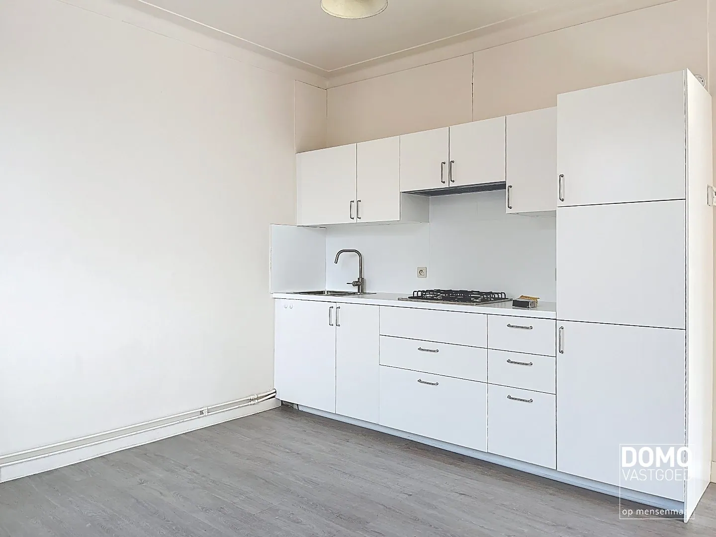 De indeling is als volgt: Leefruimte met veel lichtinval en toegang tot het balkon met aansluitend een volledig nieuwe open keuken. De badkamer met douche en toilet is eveneens helemaal vernieuwd. Hiernaast bevindt zich een ruime slaapkamer.