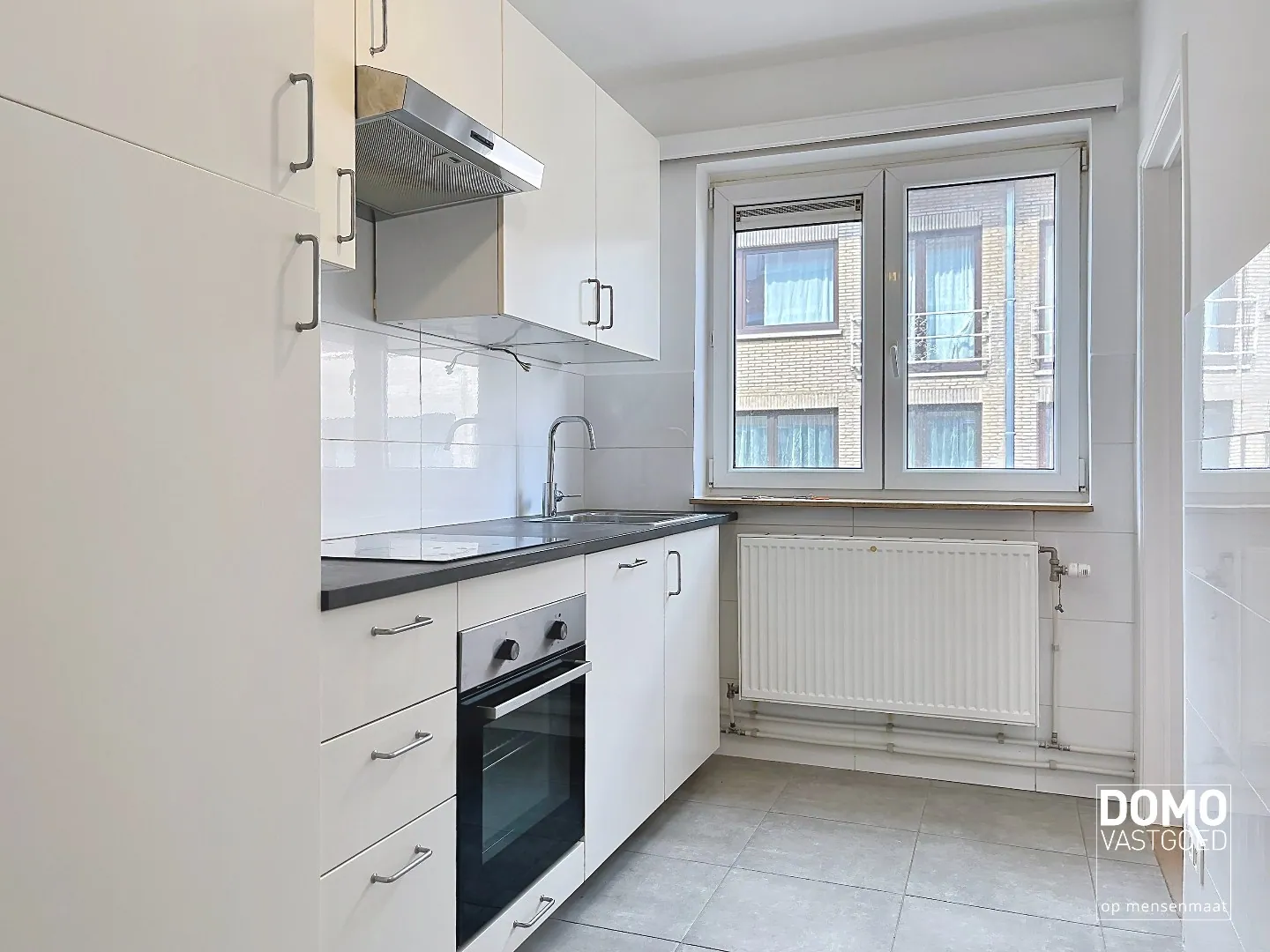 Het appartement is voorzien van een ruime living, en heeft ernaast een keuken voorzien van toestellen.