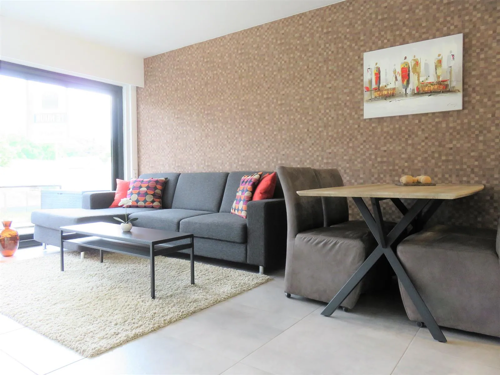 De indeling is als volgt: leefruimte met eetkamer, aparte en volledig geïnstalleerde keuken, badkamer (lavabo, douche en toilet) en een slaapkamer. Grenzend aan de leefruimte is er nog een gezellig terras.
