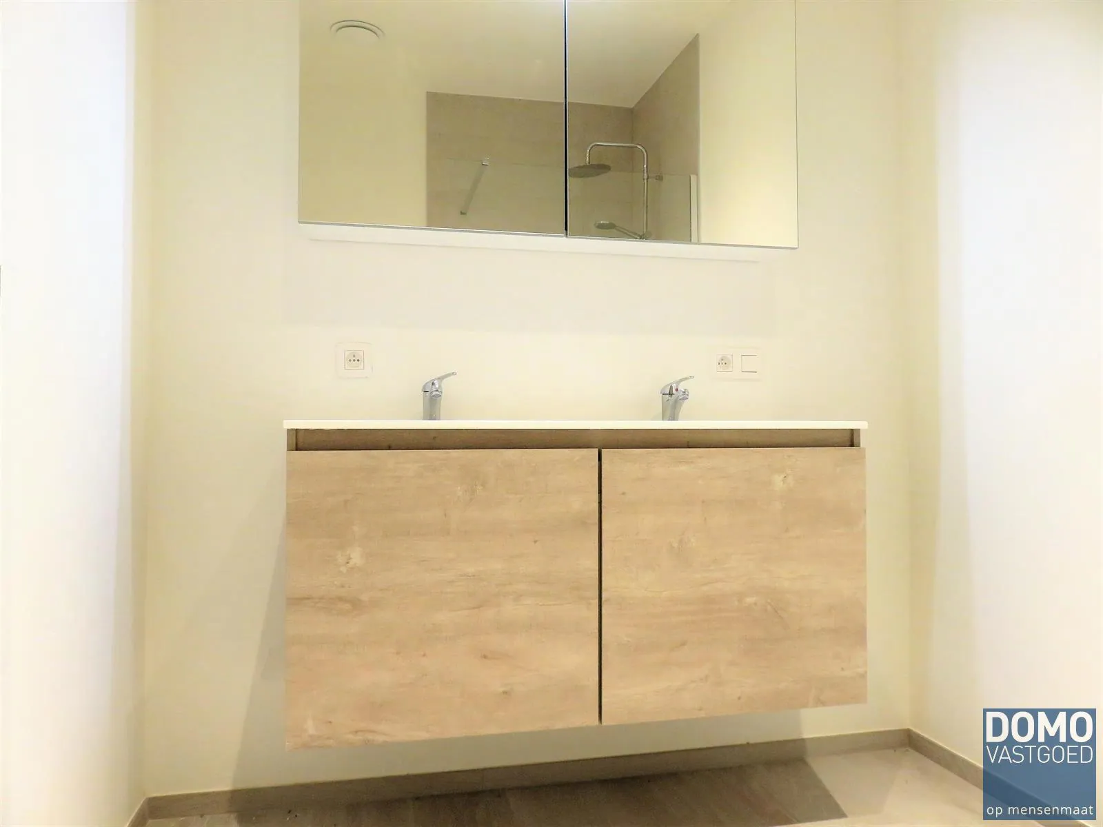 Dit appartement is als volgt ingedeeld: een inkomhal met vestiaire en gastentoilet, 2 ruime slaapkamers van bijna 13 m² en 10 m², een badkamer met ruime inloopdouche en dubbele lavabo.