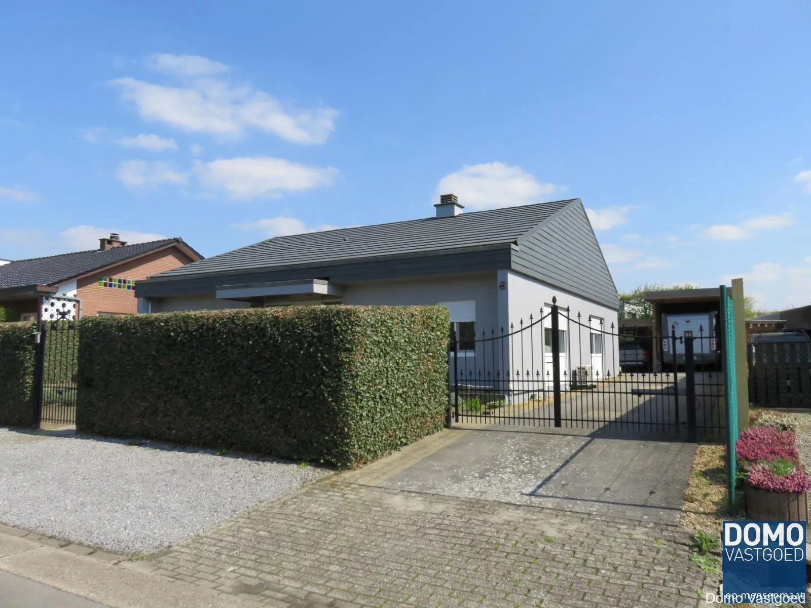 In de aangelegde tuin is het aangenaam vertoeven. Hier is eveneens een ruime carport voorzien. Als extra is de woning volledig omheind en voorzien van automatische poorten.