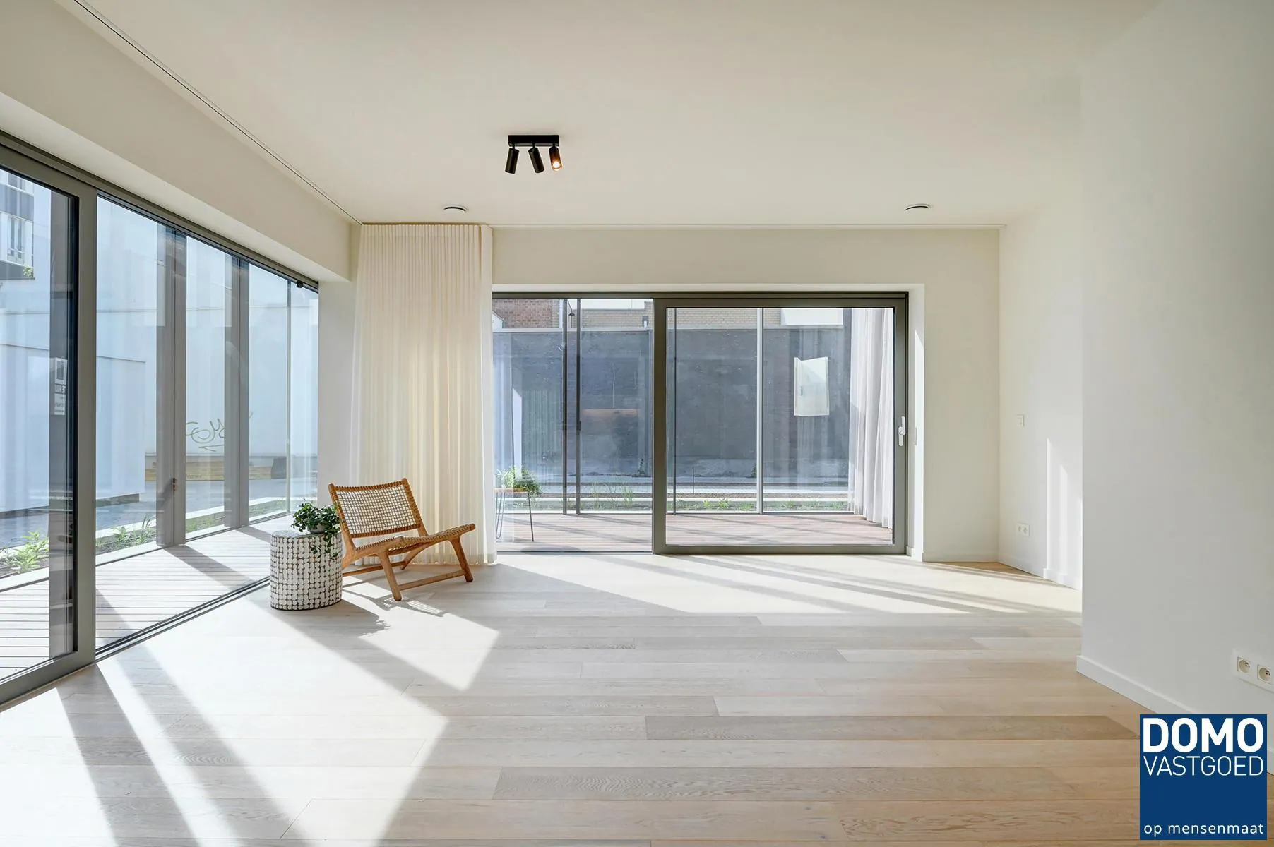 De kers op de taart van dit appartement is de unieke wintertuin van maar liefst 34m². Deze kan u ten alle tijden en op enkele seconden omtoveren tot een zonneterras. Optioneel kan er nog terrasverwarming voorzien worden.