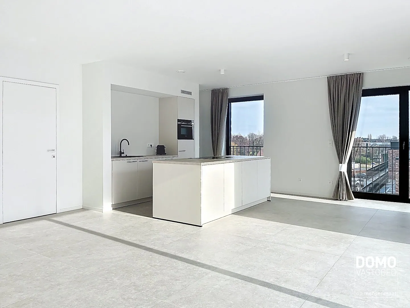De woonruimte is lichtrijk en ruim, met directe toegang tot een aangenaam terras met verzicht. Er is een open keuken aanwezig die uitgerust is met toestellen. Verder beschikt het appartement over twee slaapkamers, een stijlvolle badkamer en een apart toilet.