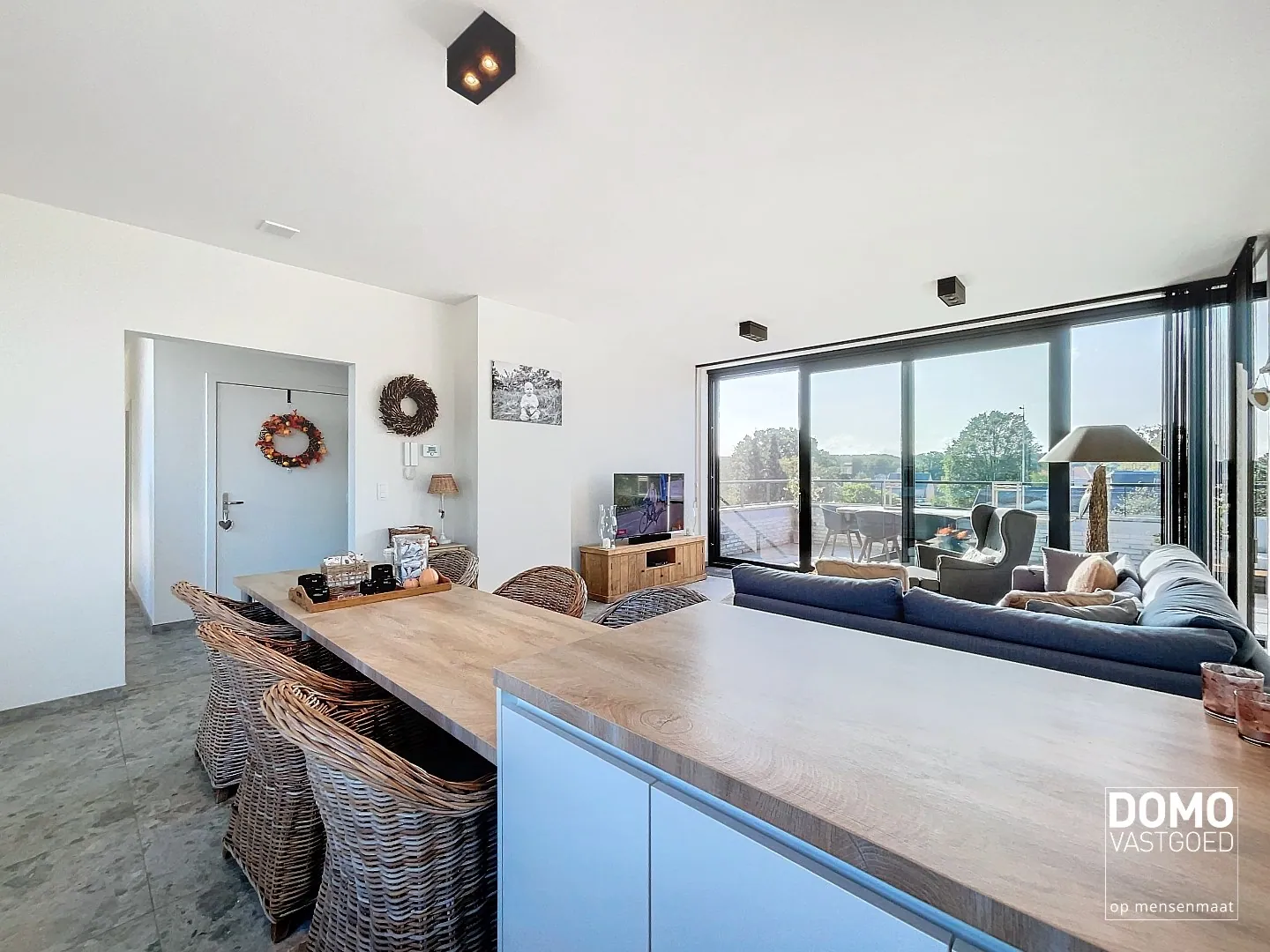 Via de lift of trap heb je toegang tot het penthouse. De woonkamer is verbonden met een open uitgeruste keuken en groot zuidgericht terras. Er zijn twee slaapkamers met aansluitend terras, badkamer die voorzien is van een douche en bad, wasplaats en apart toilet.