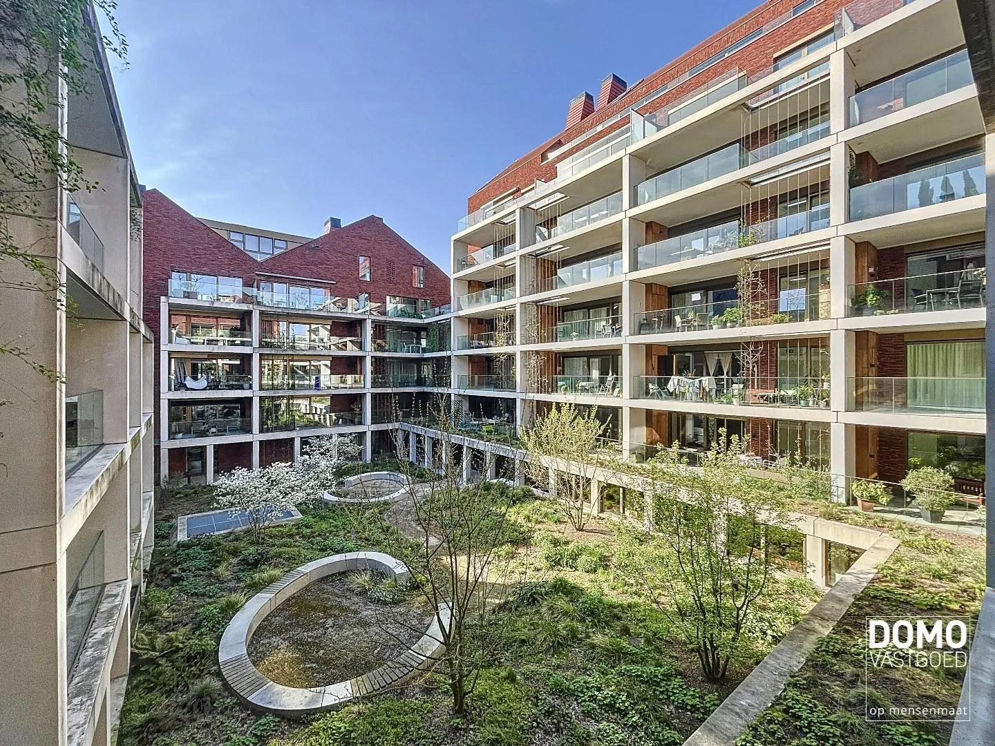 De indeling van de flat is als volgt: leefruimte met open keuken - aparte berging - slaapkamer met ensuite badkamer. Zowel via de leefruimte als slaapkamer heb je toegang tot het terras met een geweldig zicht op de groene binnentuin in het hartje van Hasselt centrum.