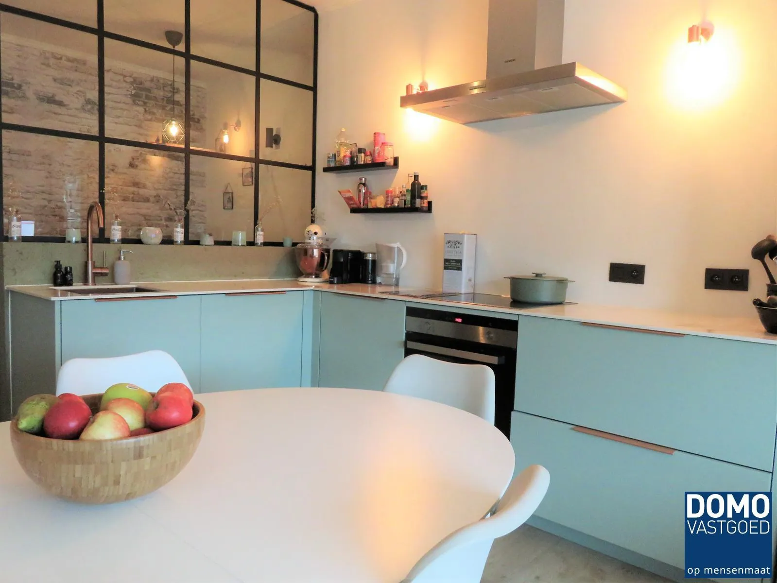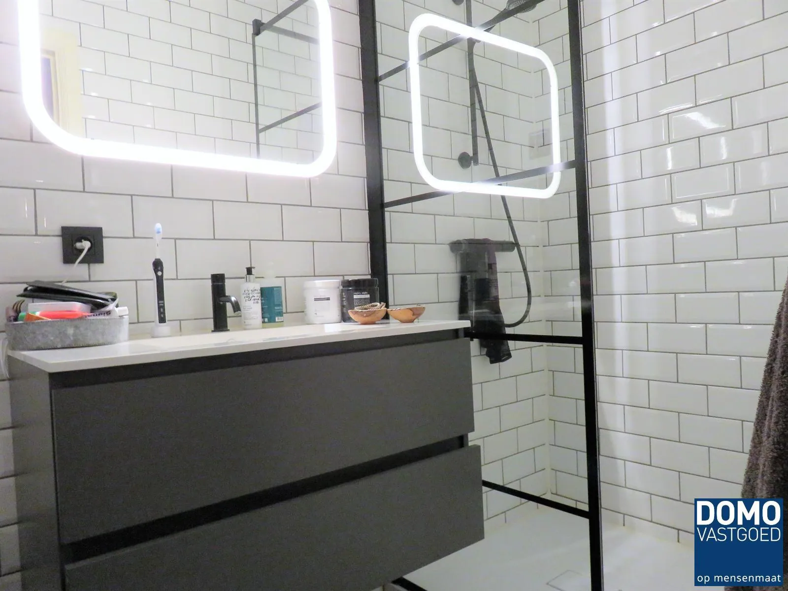 De slaapkamer is gecreëerd aan de inkom en grenst aan de keuken. Verder is er een apart toilet en moderne badkamer met inloopdouche.