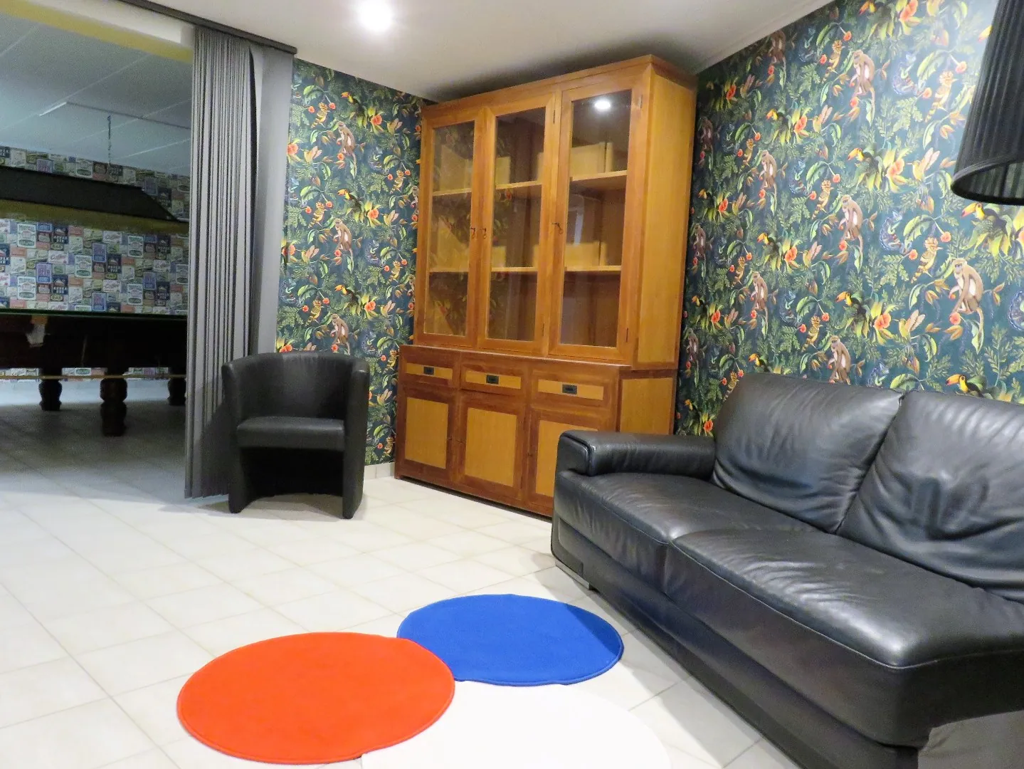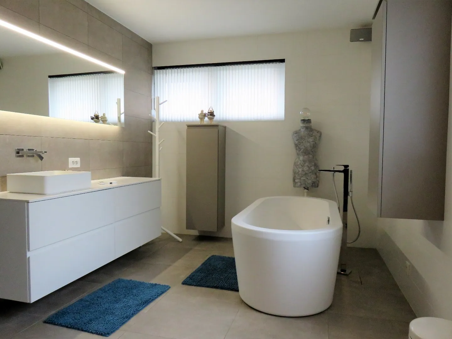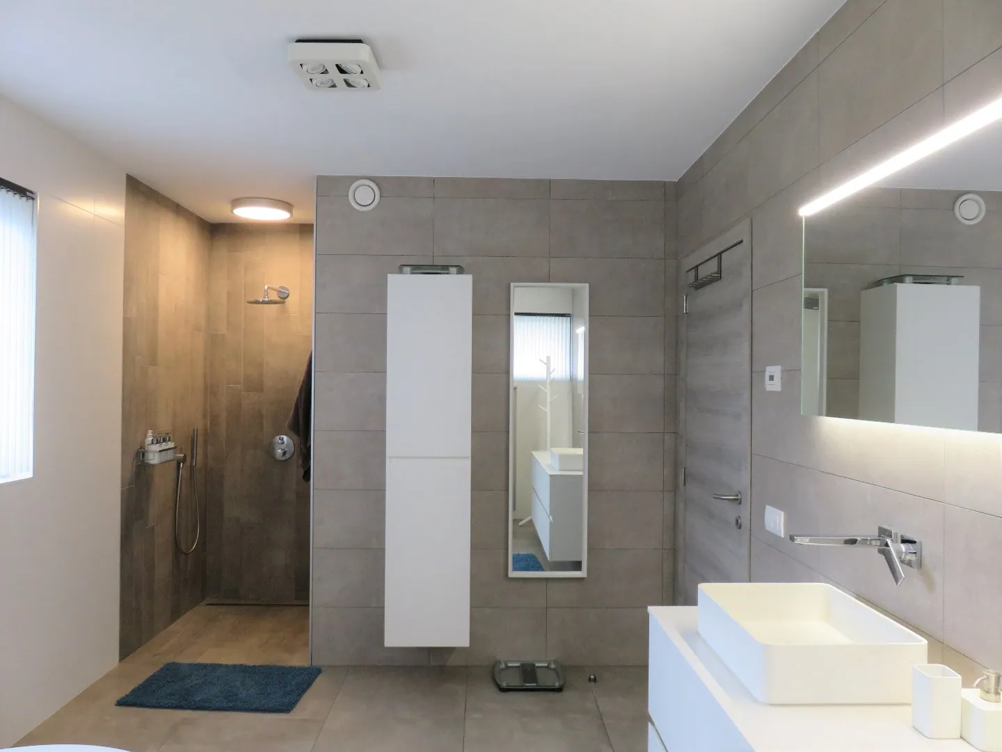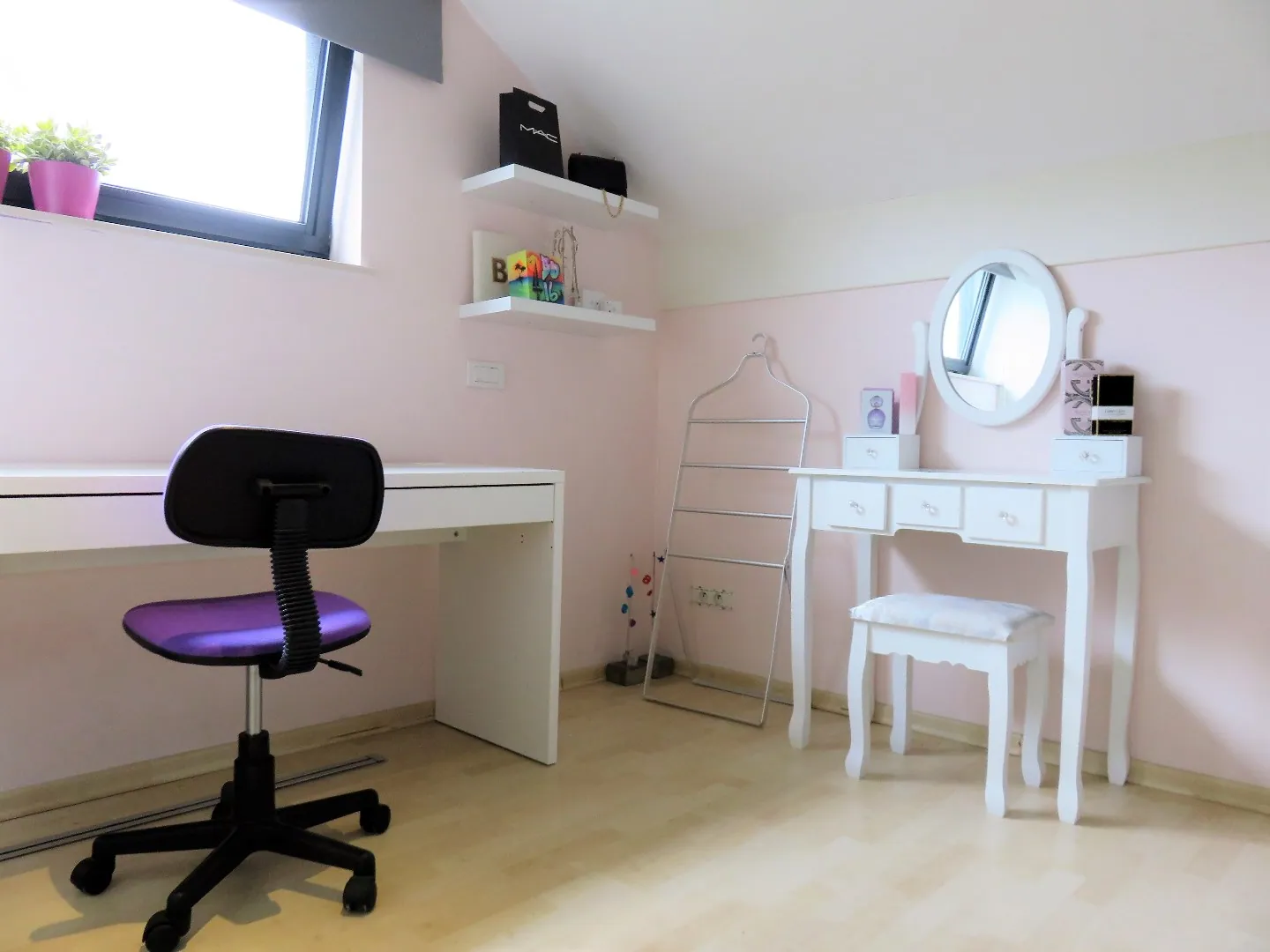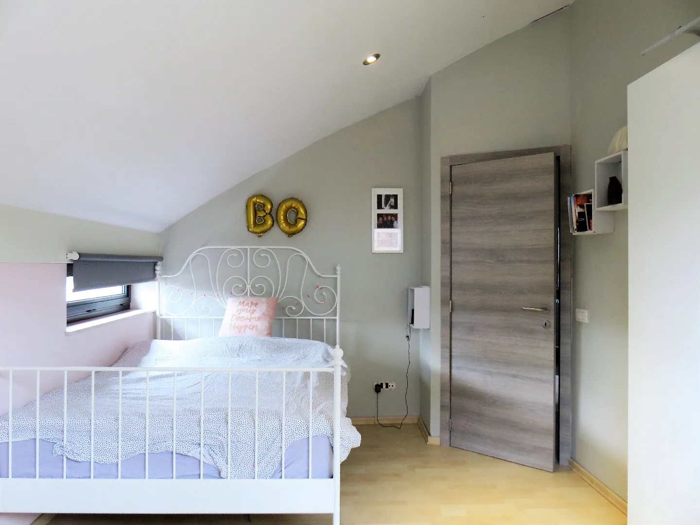 Op de 1ste verdieping vinden we 3 ruime slaapkamers waarvan 1 met dressing en voorzien van airco, een open bureelruimte die eventueel nog kan dienst doen als extra slaapkamer, apart toilet en moderne badkamer met ligbad en inloopdouche. Via een vaste trap komt u op de geïsoleerde zolder die dienst doet als bijkomende opbergruimte. Tot slot is de woning volledig onderkelder en is ingericht als hobby & speelruimte, relax plaats met TV aansluiting en zelfs een snookerzaal (inclusief snooker).