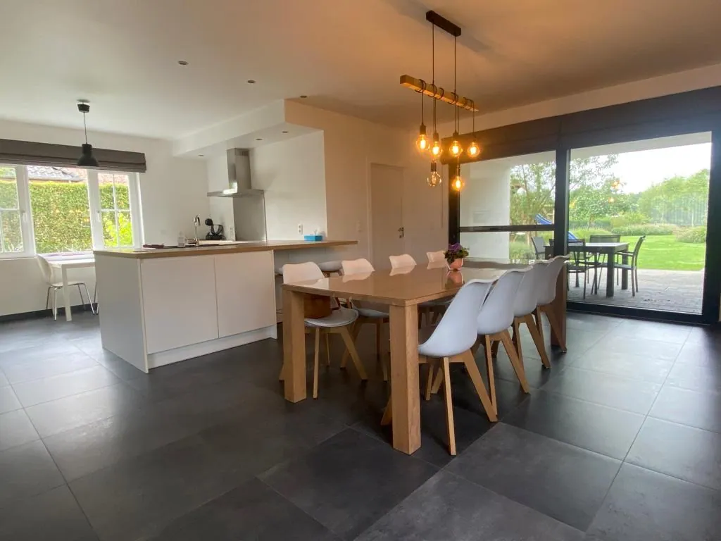 Via de inkomhal betreden we de open leefruimte met houtkachel vanwaar we verder gaan naar een recent moderne keuken die volledig uitgerust is met alle huidige comfort. Vanuit de keuken en leefruimte heb je een prachtig zicht op de groene tuin. Gelijkvloers is er ook nog een gastentoilet en berging met wasmachine en droogkast aanwezig. Op verdiep vinden we 3 ruime slaapkamers en badkamer terug.