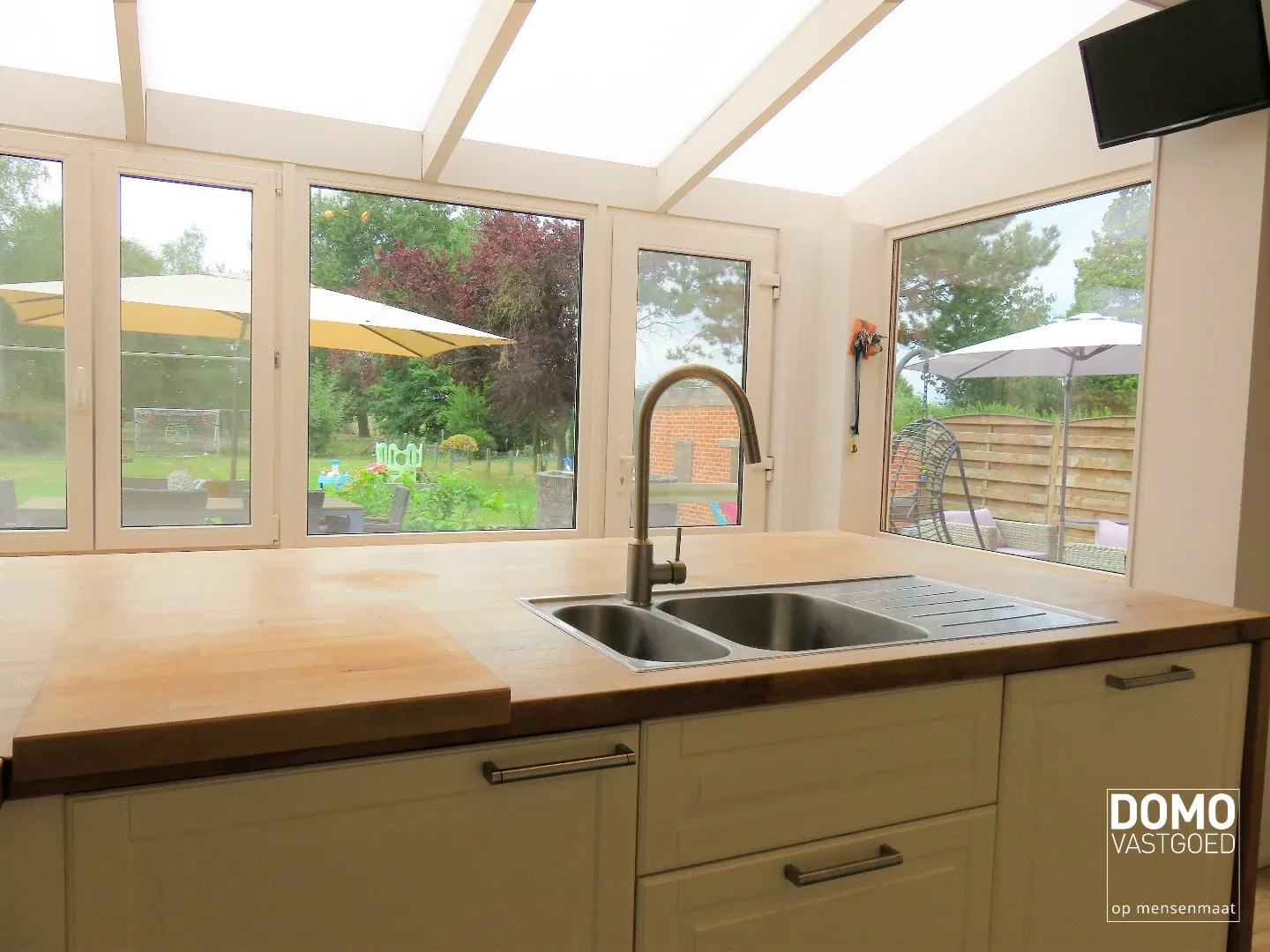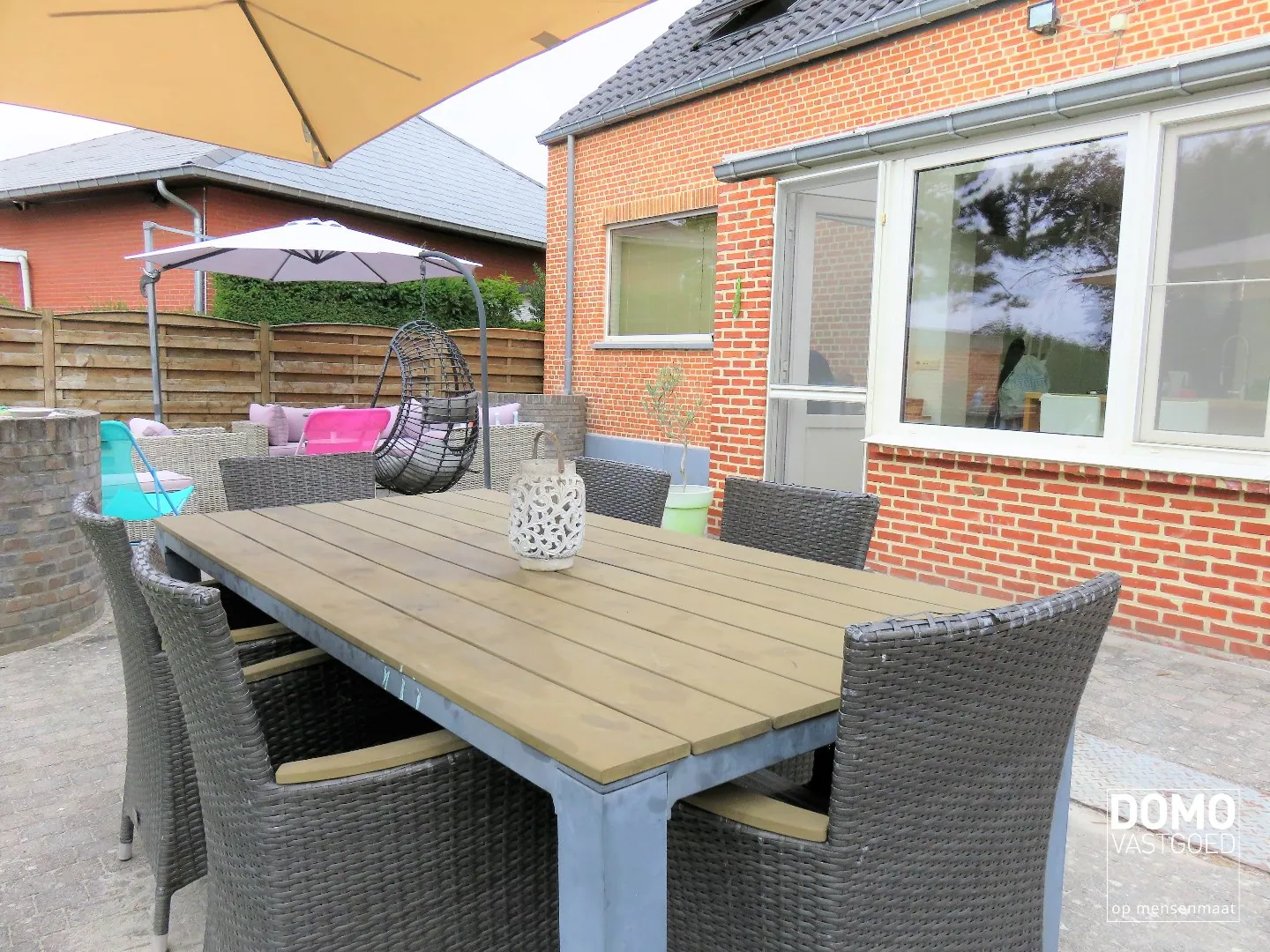 Op het aangename terras en tuin kan u in alle rust van uw privacy genieten. Daarbij kan u letterlijk vanuit de tuin naar het achterliggende schooltje.