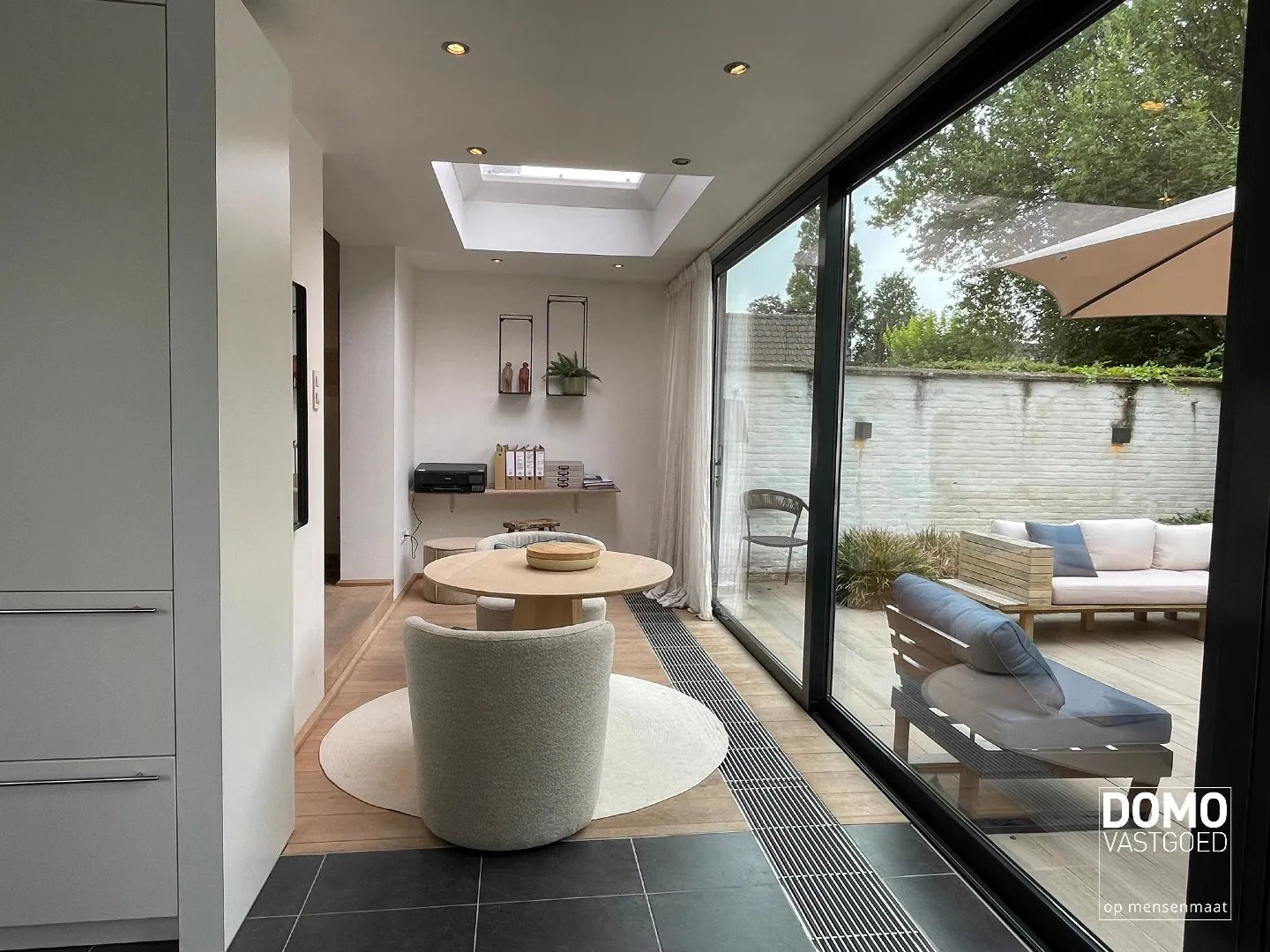Daarbij is er nog een garage met automatische poort en een seizoenstuintje aan de zijkant van de woning.