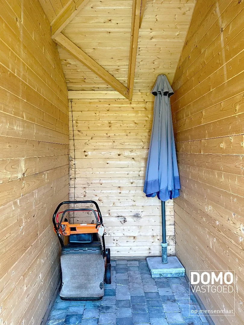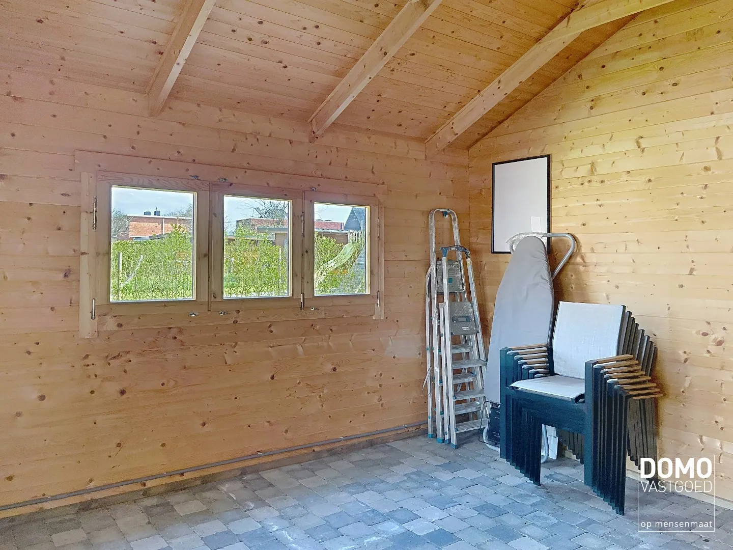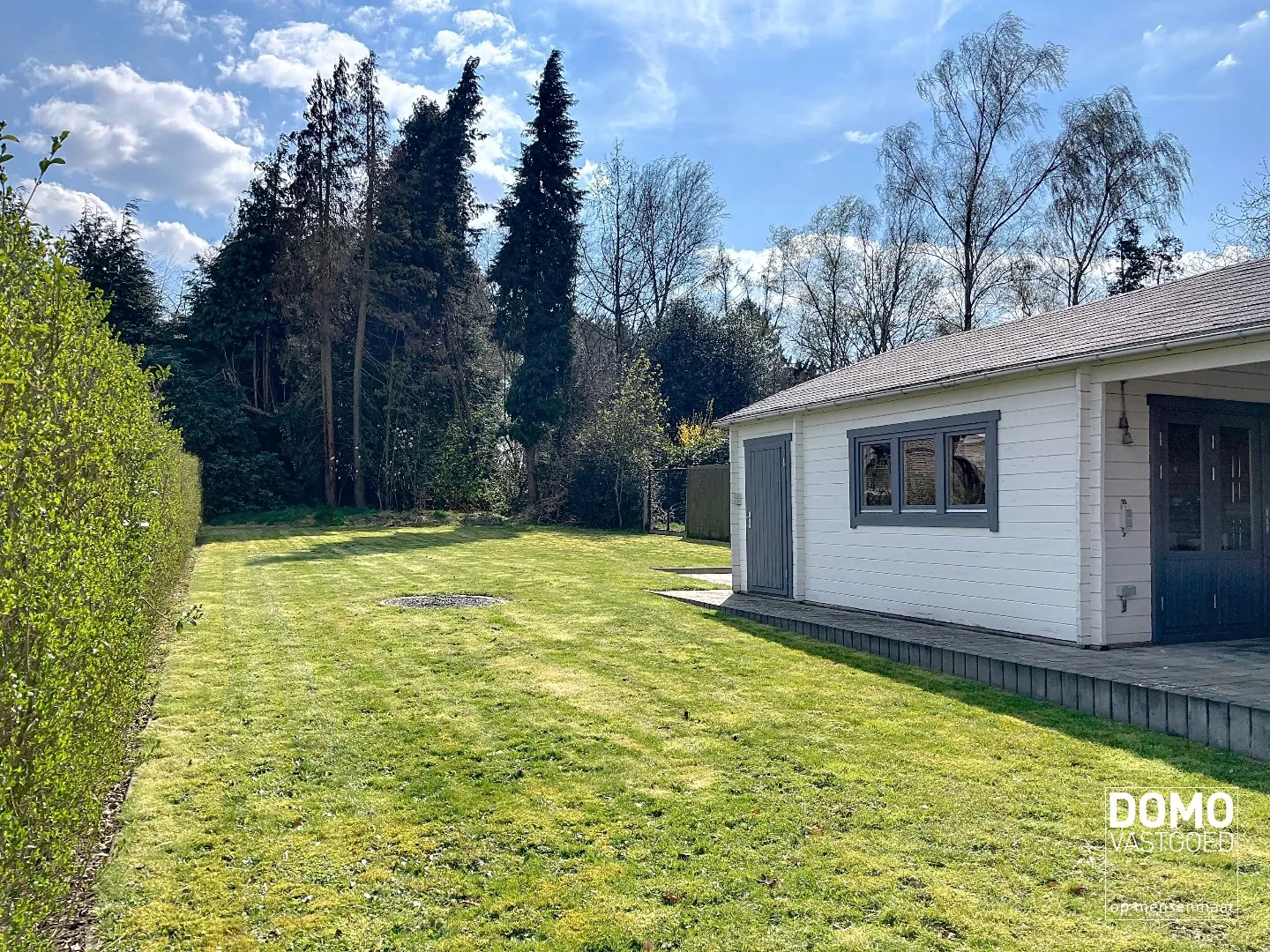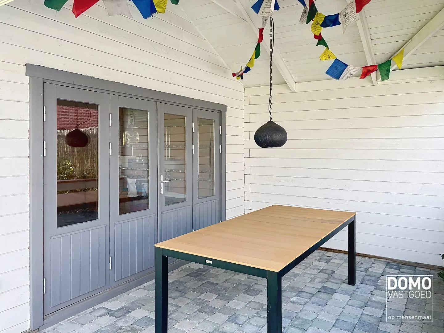 De leefruimte geeft uitzicht op de groene tuin, met een zowel open terras als overdekt terras. Daarnaast is er een ruim tuinhuis, met aparte opbergruimte.