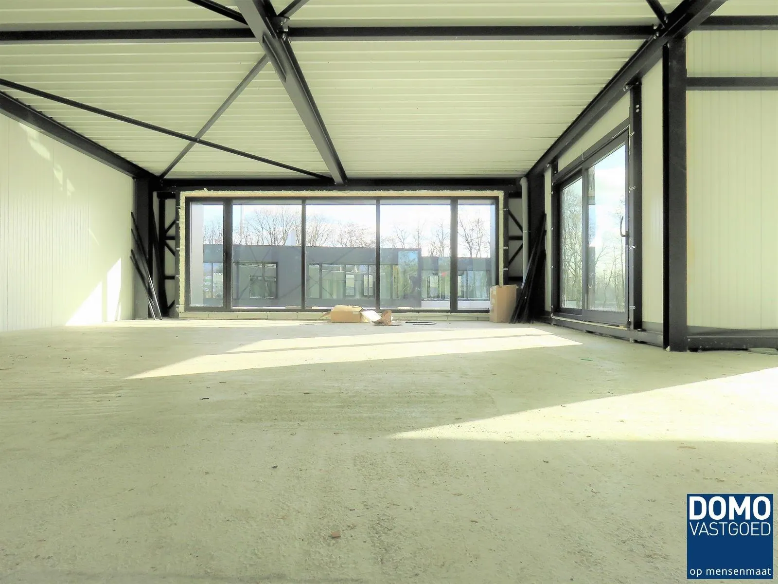 Deze unit is voorzien van een gepolierde industriële betonvloer, sectionaal poort, grote aluminium glaspartijen, aparte toegangsdeuren voor het magazijn en het kantoor ,...
