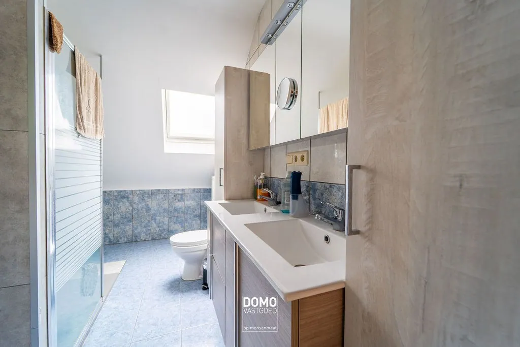De bovenverdieping omvat twee ruime slaapkamers en een verzorgde badkamer met moderne afwerking. Verder is er nog een vaste trap naar de zolder dewelke ideaal is als bergruimte. Het geheel is praktisch ingedeeld en straalt een warm, huiselijk gevoel uit.