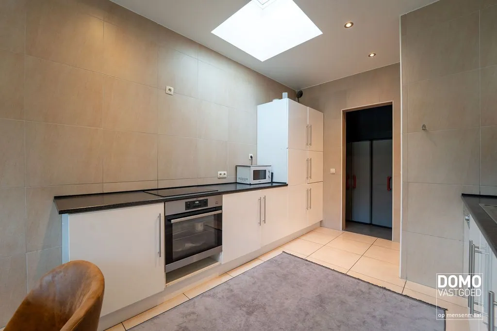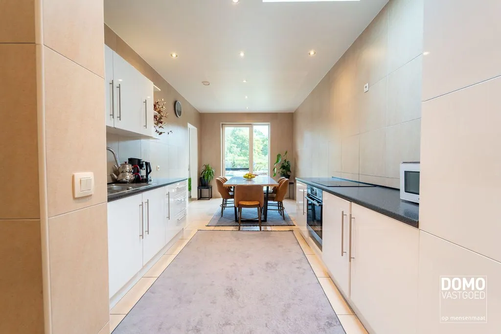 Ook buiten zijn er heel wat troeven: een zuid gerichte tuin met terras en vier private parkeerplaatsen. Het energiepeil zit bovendien helemaal goed met een label A.