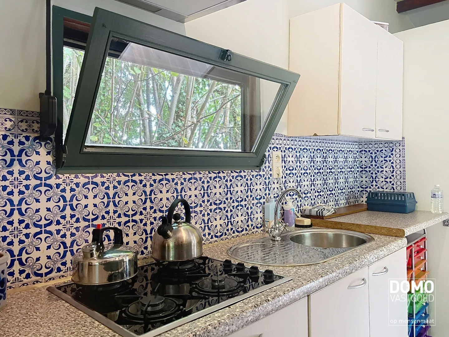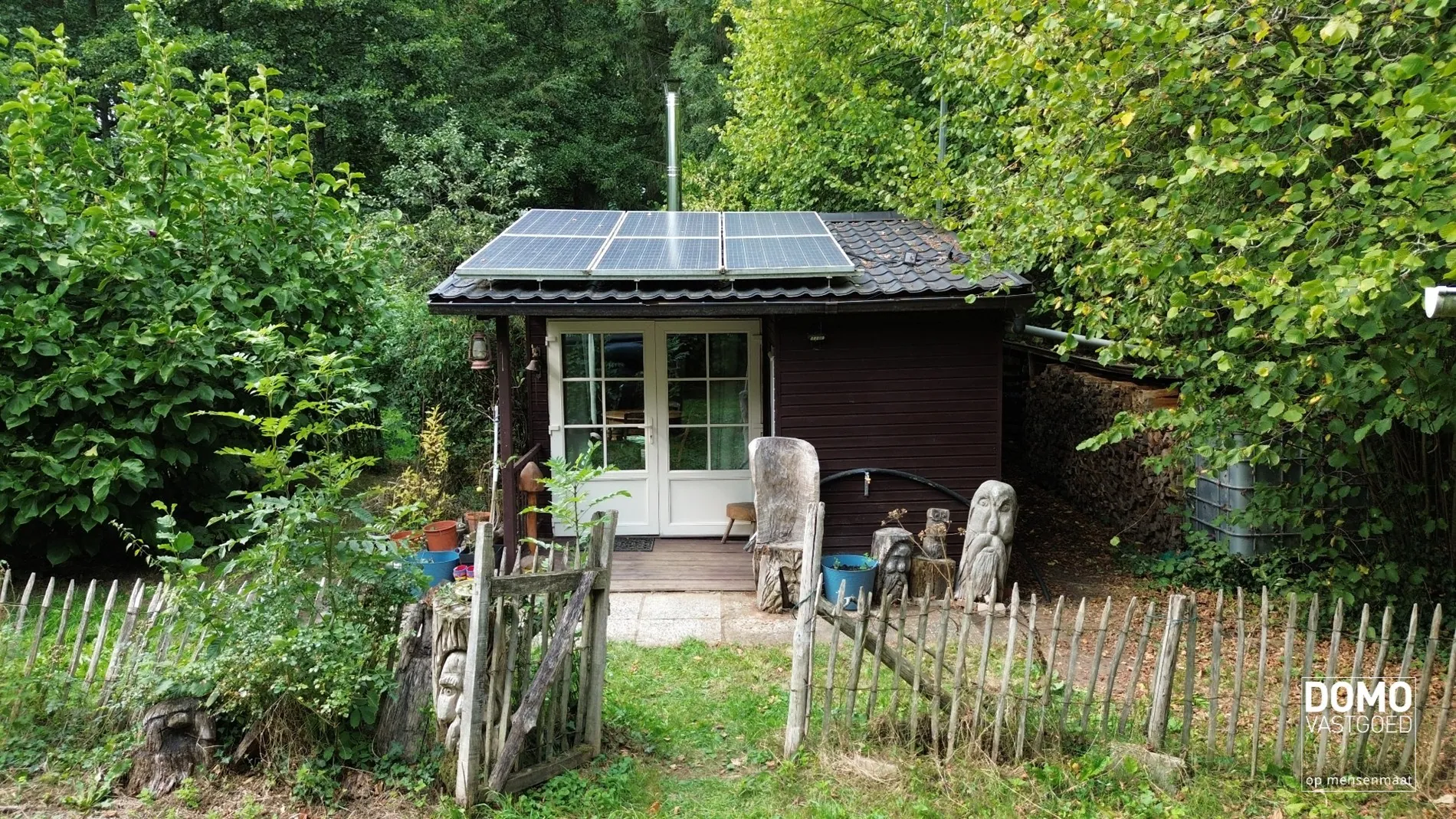 Een gezellige off-grid vakantiewoning met 1 slaapkamer, een woonkamer, een halfopen keuken, een badkamer en een toilet. Het heeft een eigen stroomvoorziening door middel van zonnepanelen en batterijen, en er is ook een eigen waterbron met een elektrische pomp. De vakantiewoning biedt met andere woorden een comfortabele en duurzame levensstijl, ideaal als tweede verblijf.
