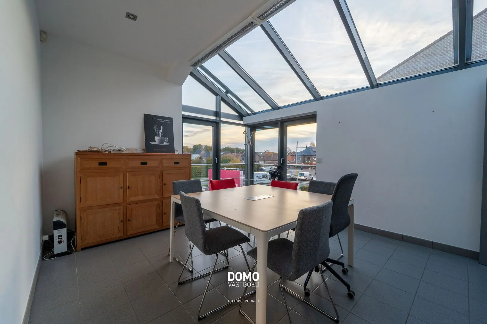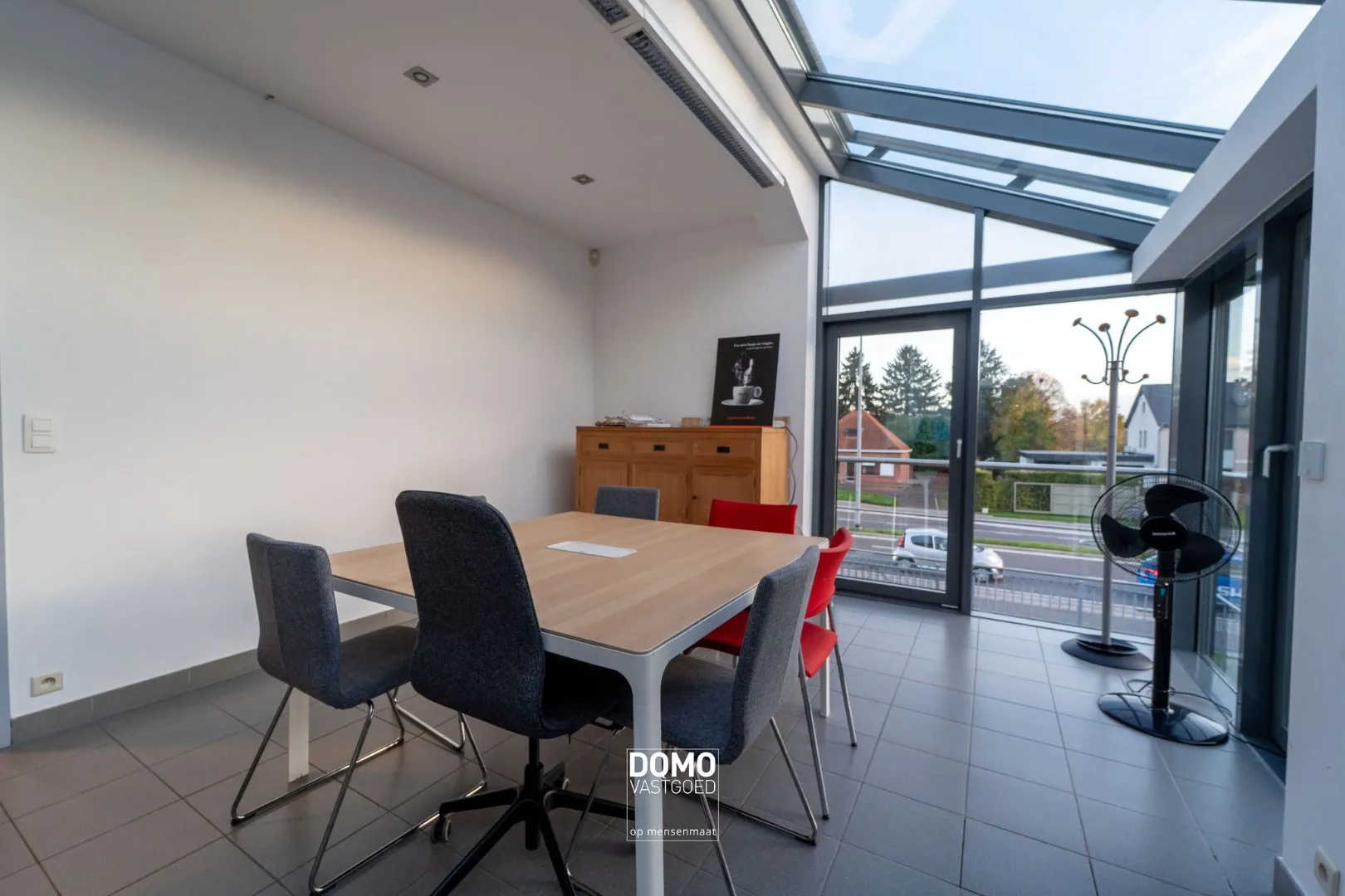 In Herk-de-Stad staat dit veelzijdige pand met tal van mogelijkheden te koop, een locatie die zich uitstekend leent voor ondernemingen die zowel ruimte als zichtbaarheid nodig hebben. Aan de voorzijde bevindt zich een verzorgde en lichtrijke showroom, ideaal om producten te presenteren of klanten te ontvangen. De nette afwerking, grote ramen en indelingsmogelijkheden zorgen voor een professionele uitstraling die onmiddellijk vertrouwen wekt.