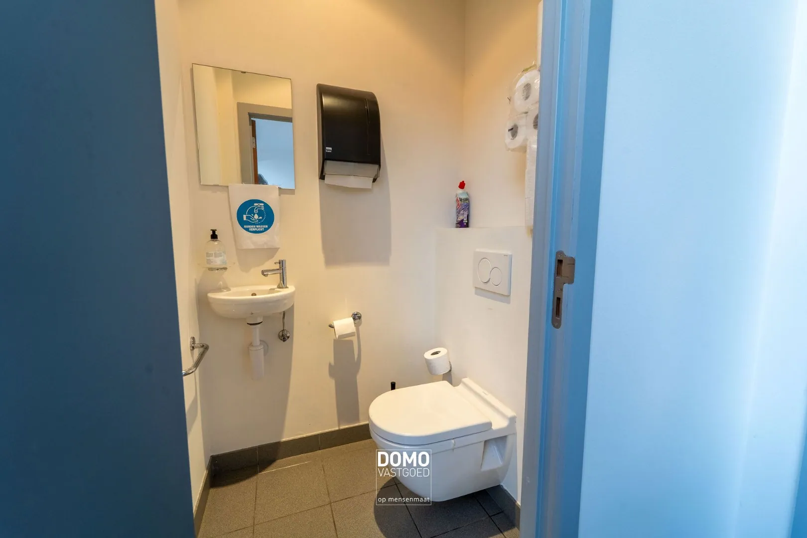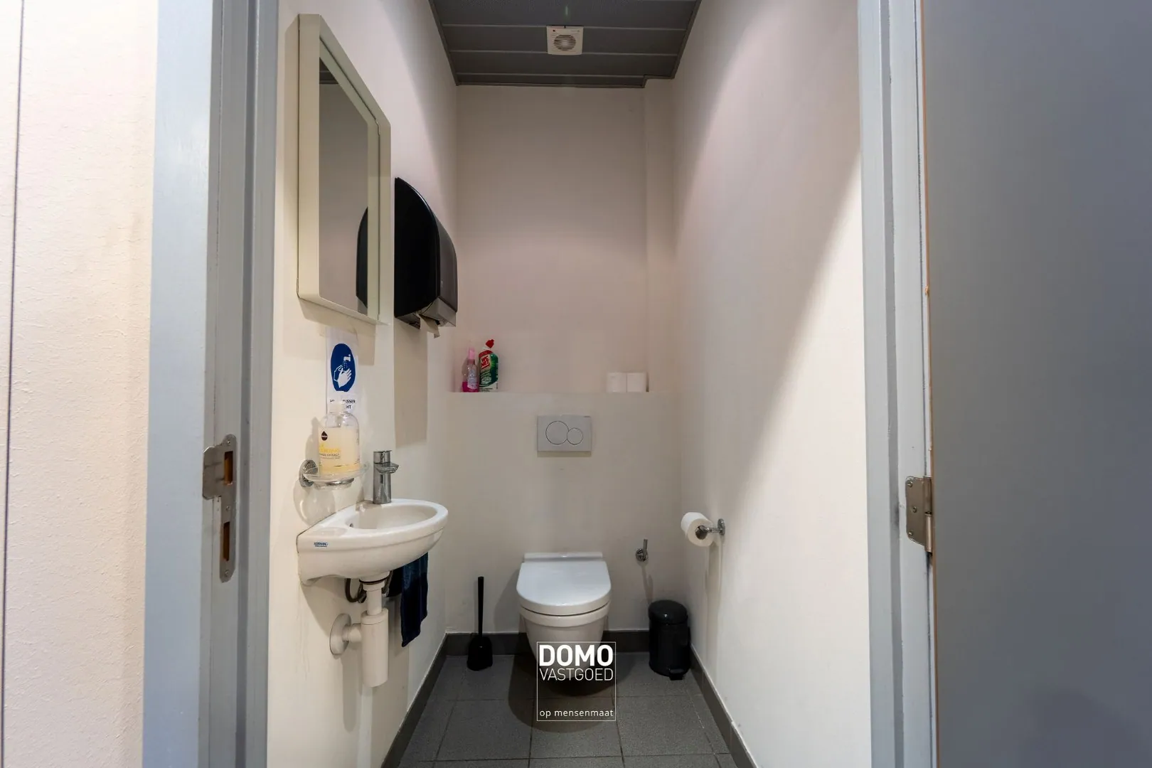 Het kantoor biedt voldoende ruimte voor administratie en werkvoorbereiding, terwijl de aanwezigheid van sanitaire voorzieningen het comfort verhoogt.