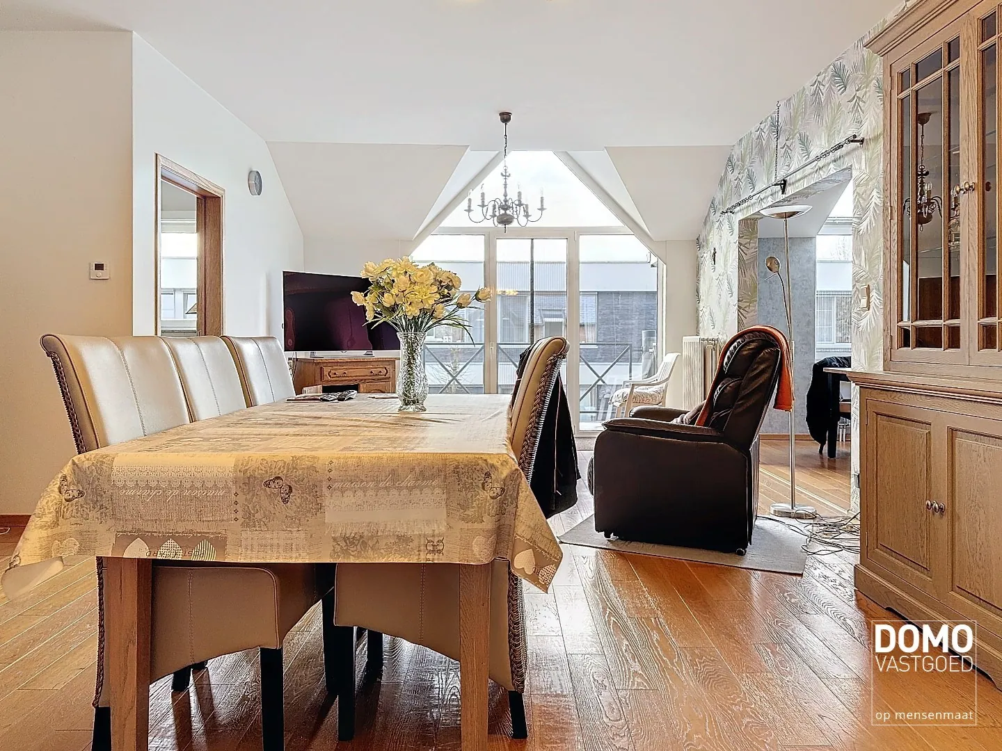 Lichtrijke woon- en eetkamer met aansluitend een aparte leeshoek/bureauruimte
