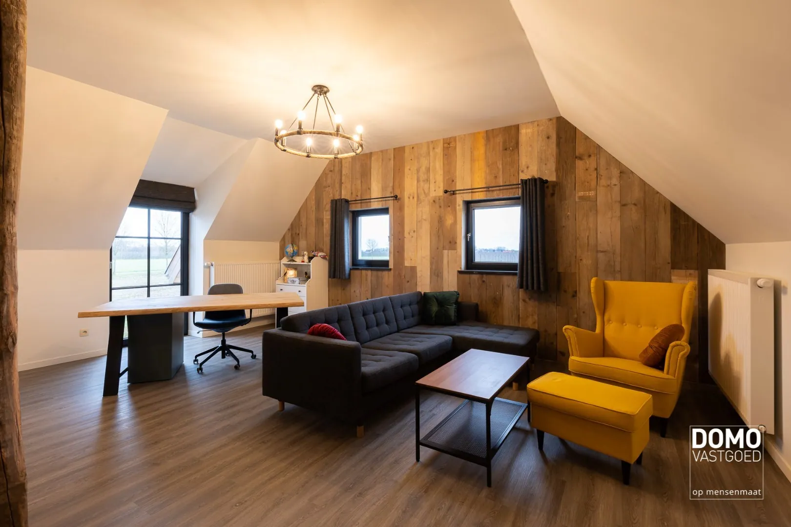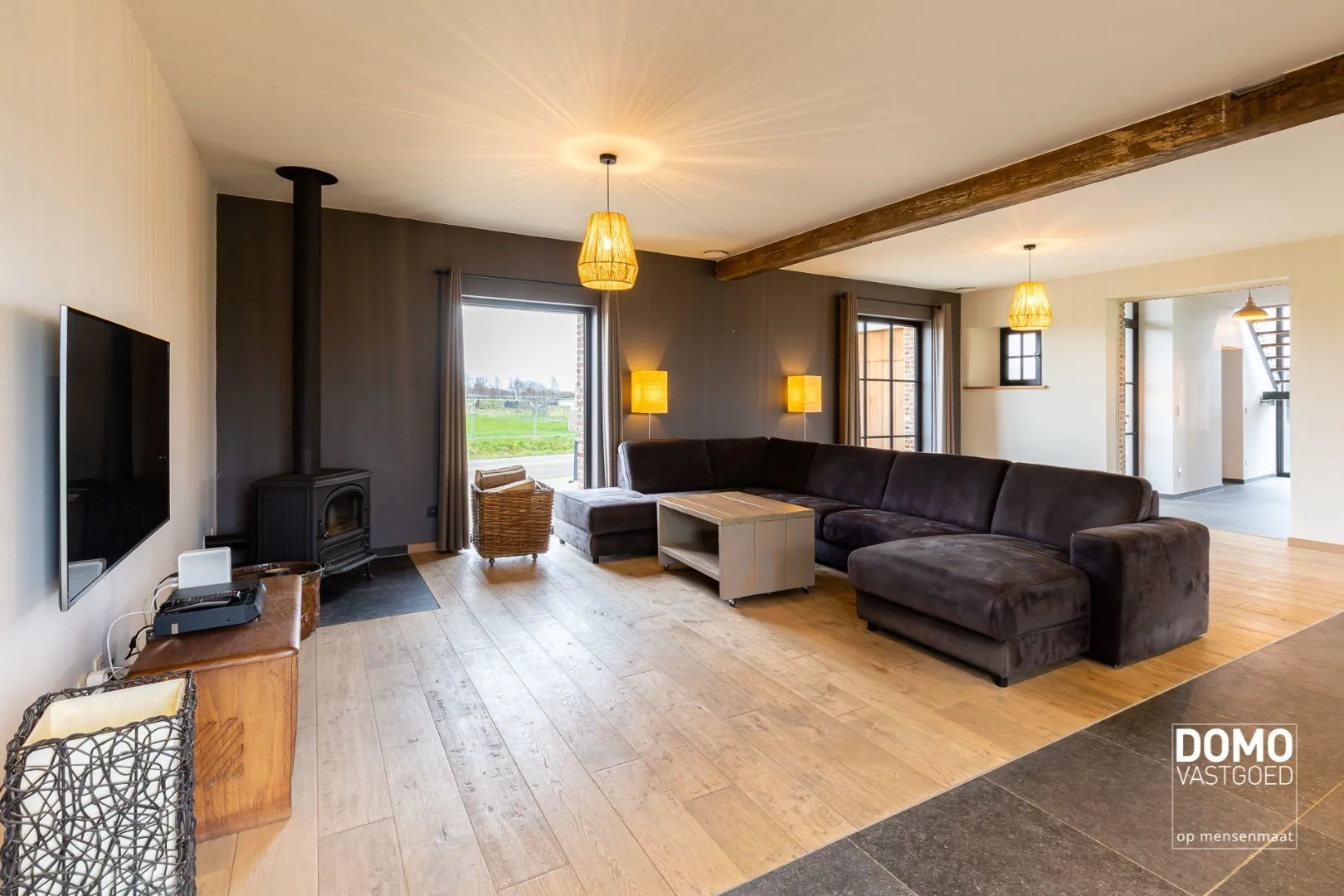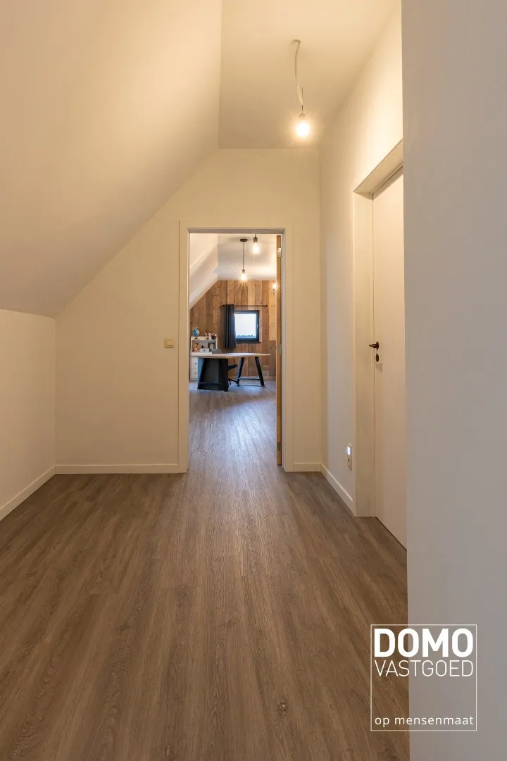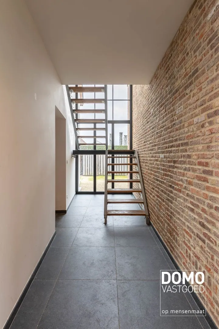 Het interieur van de woning is landelijk en stijlvol, met hoogwaardige afwerkingen en materialen. De woonkamer is ruim en biedt voldoende plaats voor een comfortabele zithoek. De grote ramen zorgen voor veel natuurlijk licht en bieden een prachtig uitzicht op de tuin. De keuken is volledig uitgerust en voorzien van moderne apparatuur.