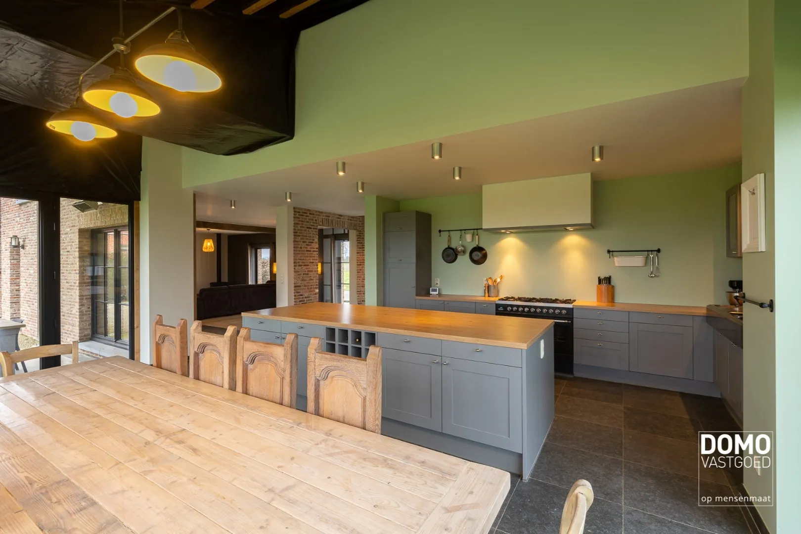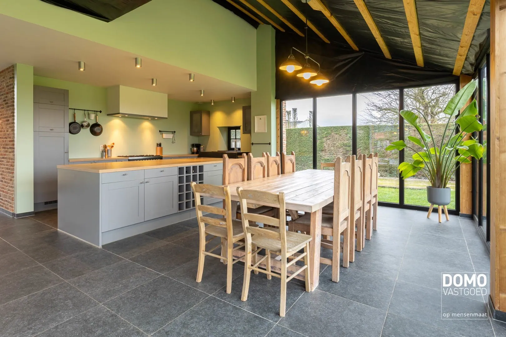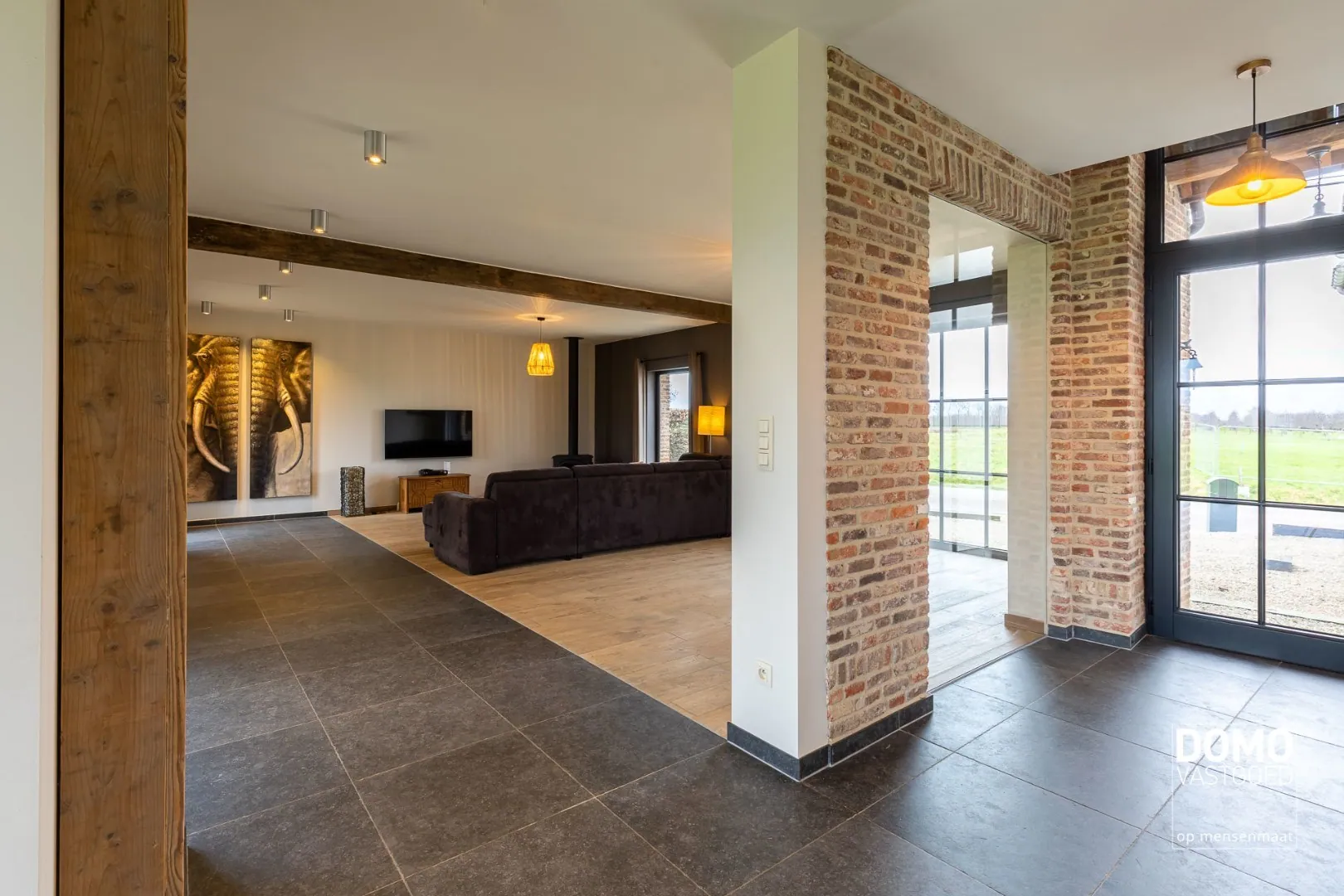 Het interieur van de woning is landelijk en stijlvol, met hoogwaardige afwerkingen en materialen. De woonkamer is ruim en biedt voldoende plaats voor een comfortabele zithoek. De grote ramen zorgen voor veel natuurlijk licht en bieden een prachtig uitzicht op de tuin. De keuken is volledig uitgerust en voorzien van moderne apparatuur.