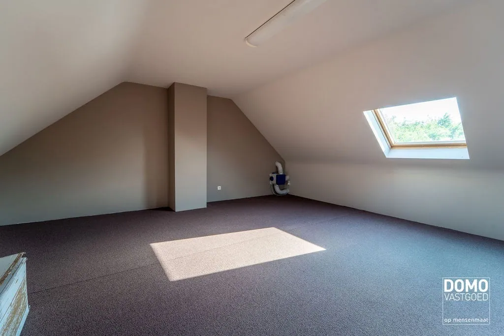 De zolderverdieping is volledig afgewerkt en biedt extra ruimte die kan worden ingericht als vijfde slaapkamer, hobbyruimte of speelkamer.
