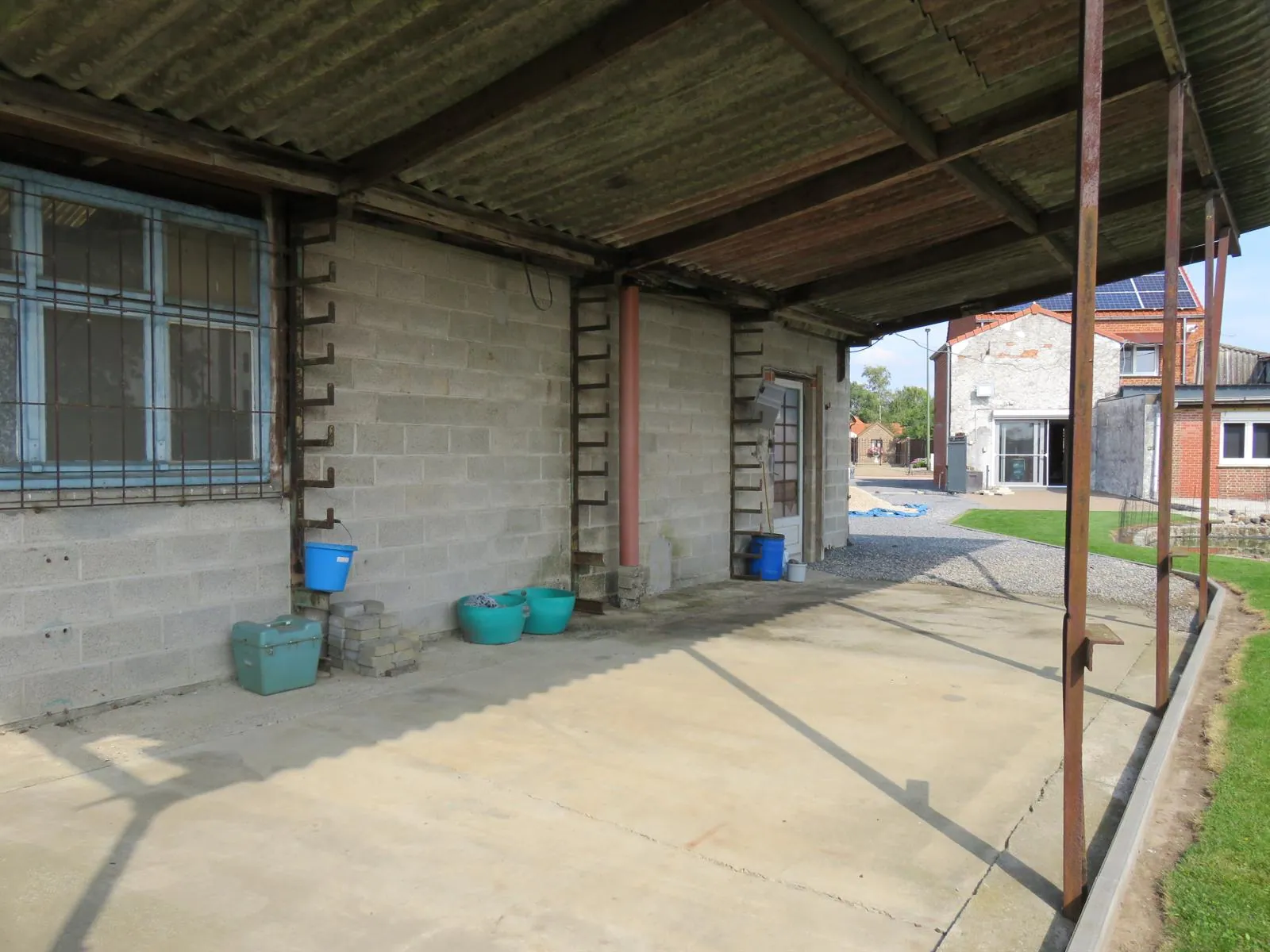 In de Zuidgerichte en volledig afgesloten tuin treffen we een magazijn van meer dan 80 m² met smeerput en een oude spuitcabine. Ideaal voor de autoliefhebber.
