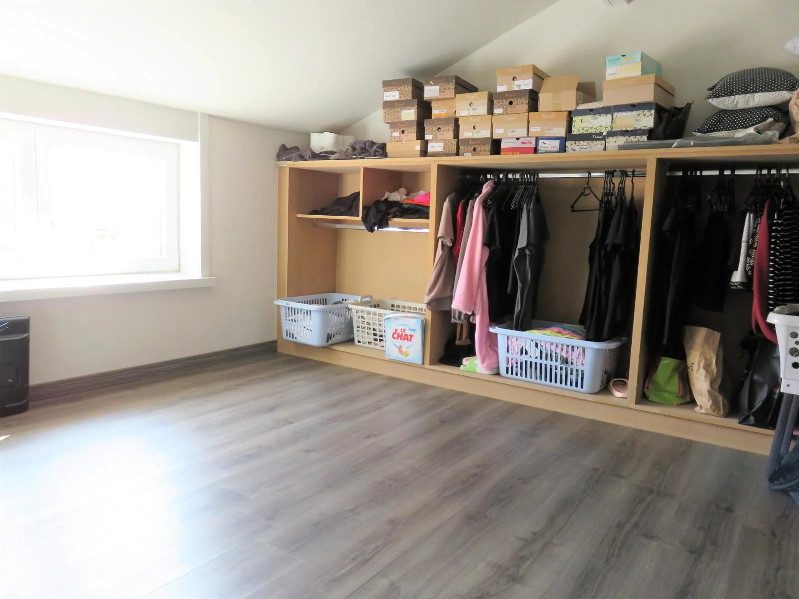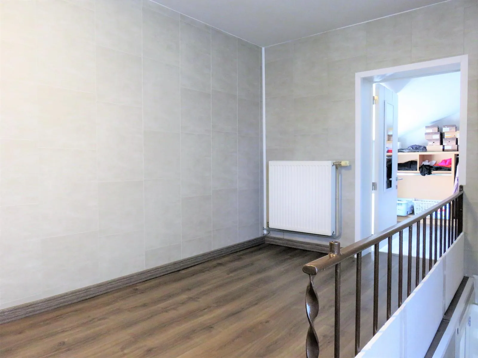 Op de 1ste verdieping vinden we 3 slaapkamers waarvan 1 momenteel is ingericht als dressing. Verder is er een moderne badkamer met wasplaats en een mooie grote overloop. De geïsoleerde zolder is bereikbaar via een luik maar kan makkelijk een vaste trap worden geplaatst zodanig er meer kamers kunnen gecreëerd worden.