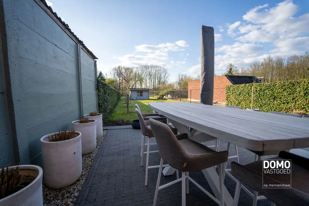 De onderhoudsvriendelijke tuin biedt alle voordelen van een groene leefomgeving, zonder het intensieve onderhoud. Dankzij de volgroeide hagen aan beide zijden geniet je bovendien van maximale privacy op het terras.