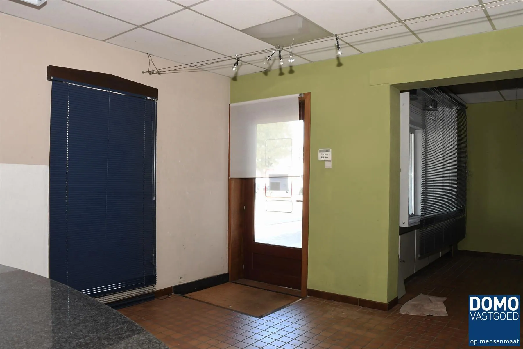 Aan de voorzijde ruimte handelsruimte. Van hieruit is er toegang naar het achterliggende gedeelte wat momenteel ook mee betrokken wordt in het handelsgedeelte waar er een apart bureel aan gekoppeld is.