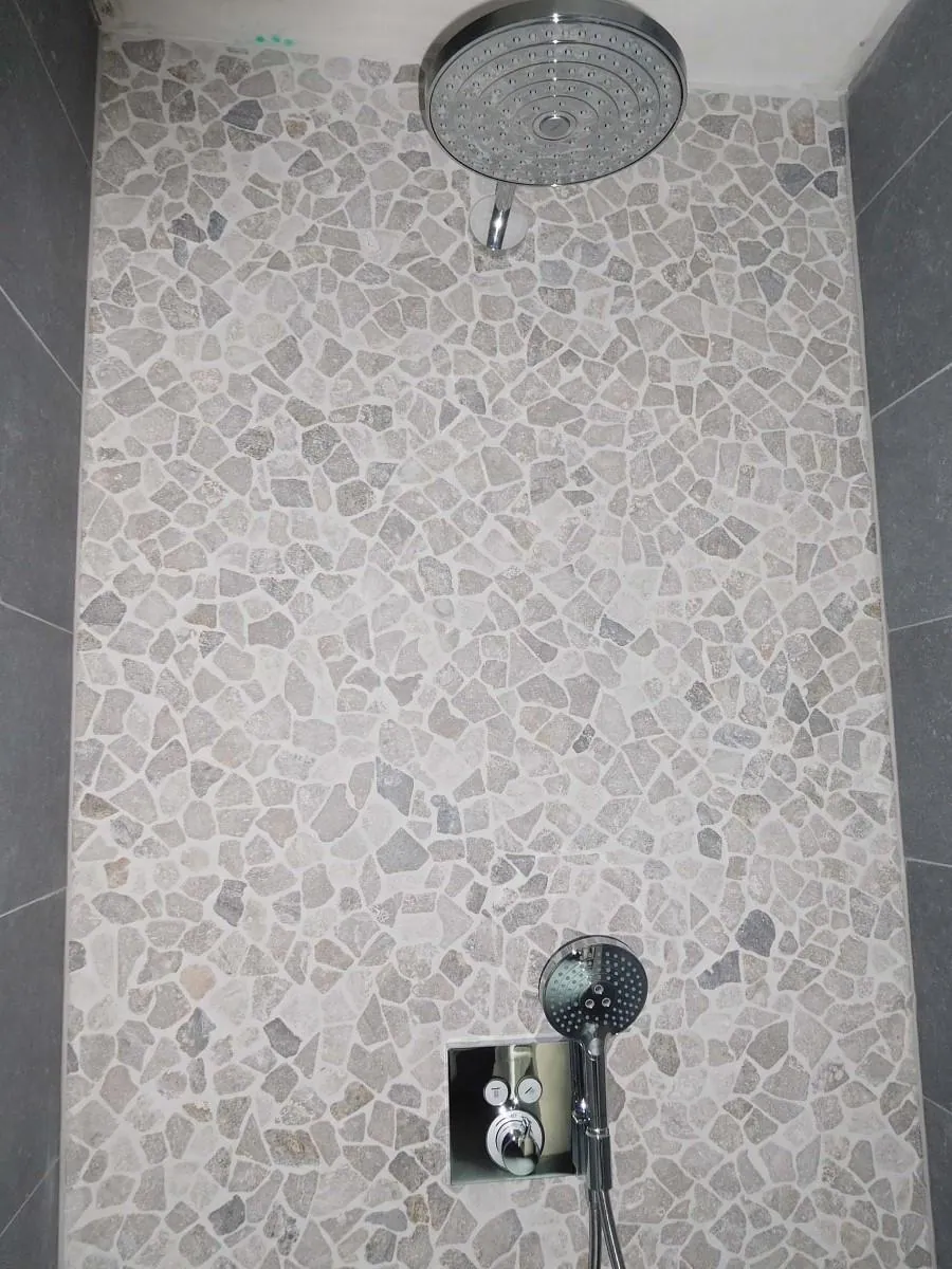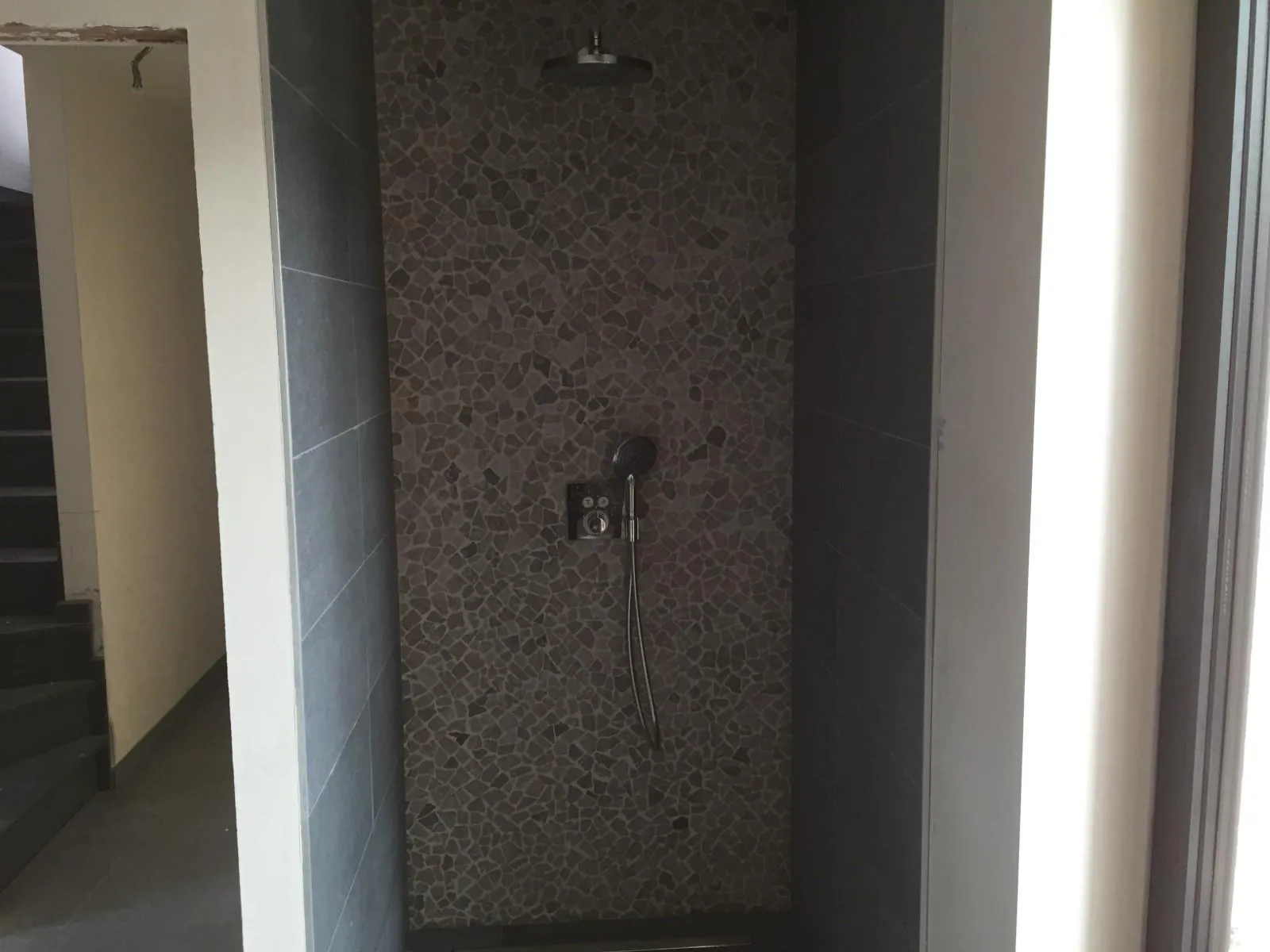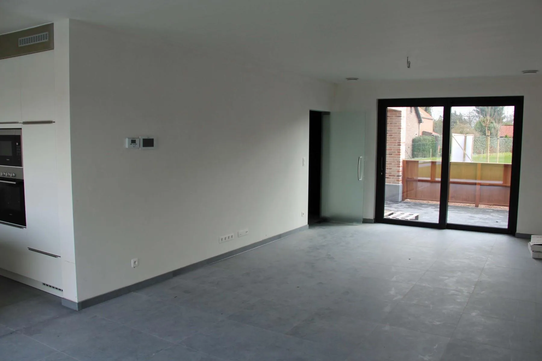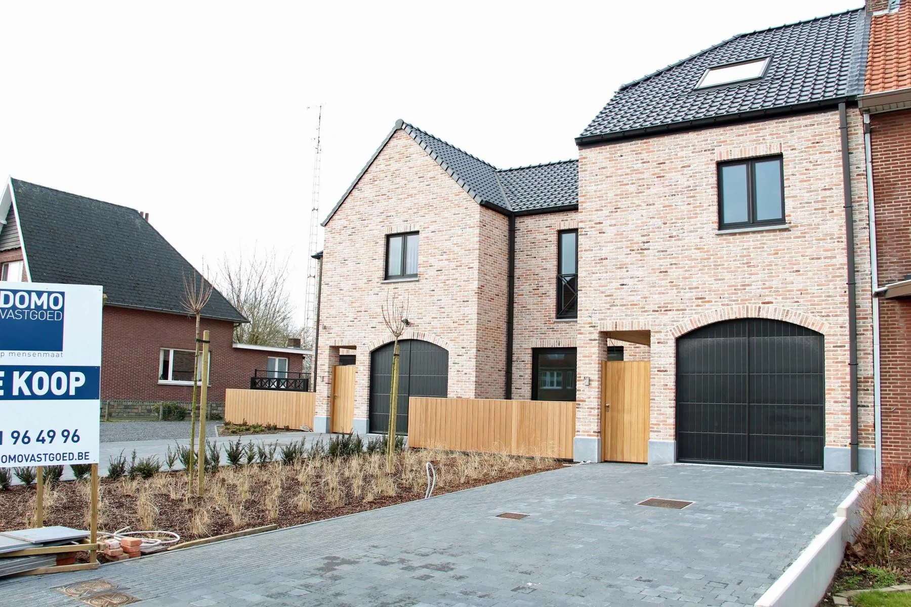 - gelijkvloers: inkomhal, toilet, living met open keuken berging, wasplaats, garage.