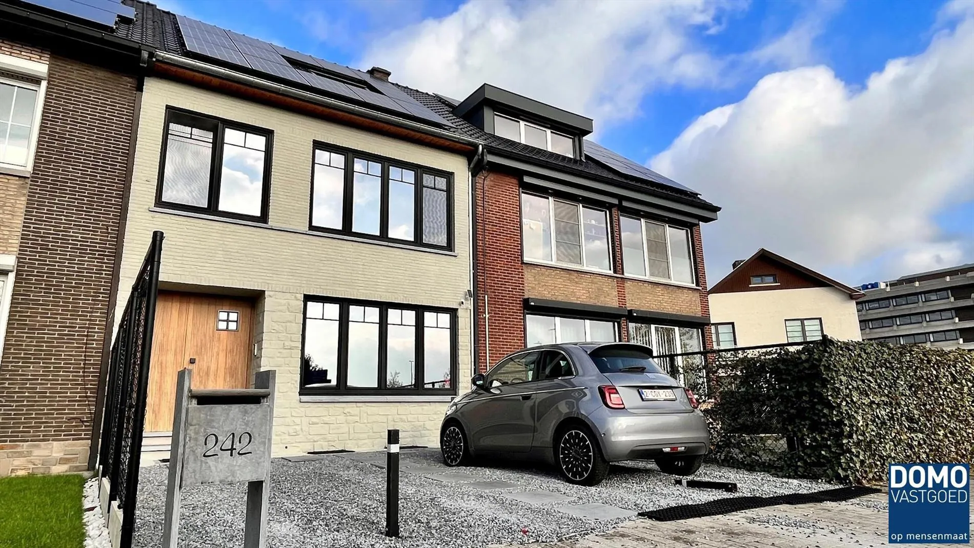 Aan de voorzijde van de woning is een laadpaal voorzien en kan u tevens twee wagens makkelijk parkeren.