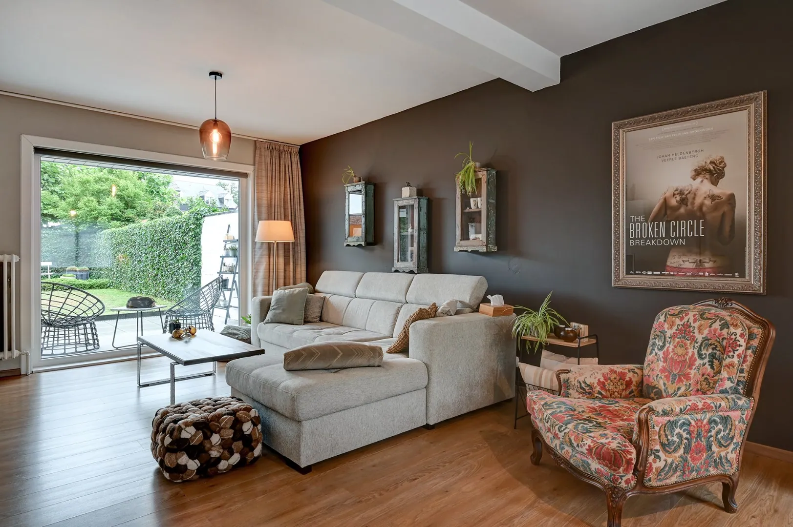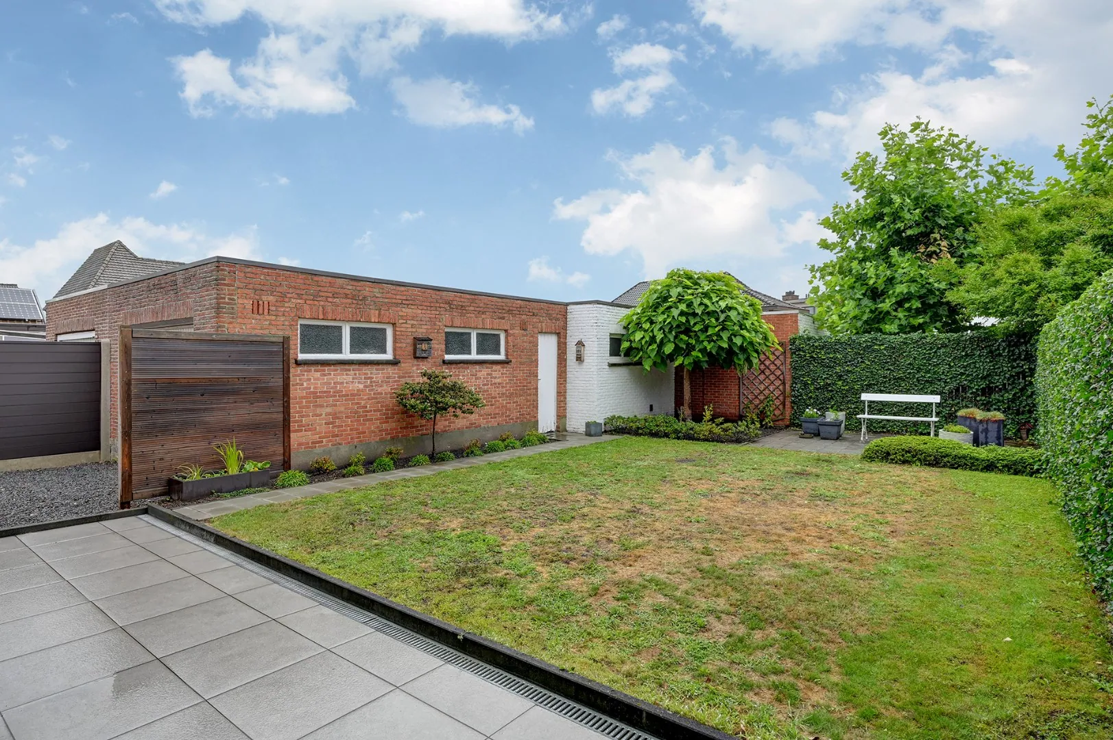 De tuin is gezellig aangelegd en voorzien van een aparte garage met voldoende opbergruimte.