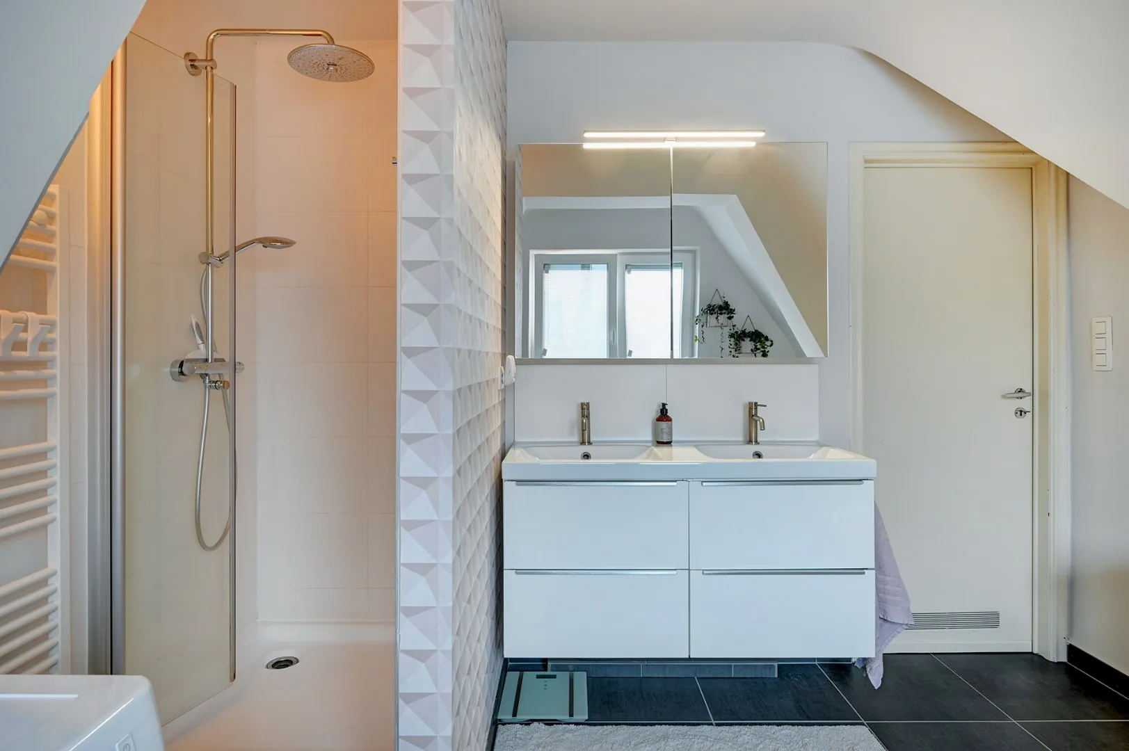 De woning heeft dan ook een totaalrenovatie ondergaan zowel de vloeren, keuken, elektriciteit, sanitair, airco, ramen, dak,.... zijn vernieuwd.