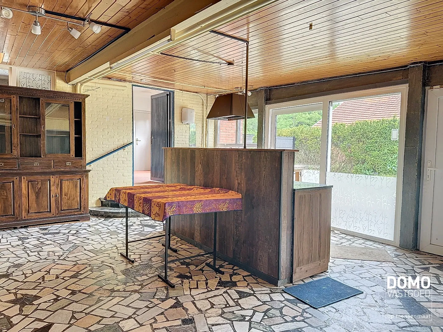 De huidige indeling is als volgt: Inkomhal met toegang tot eetkamer en zeer ruime woonkamer. Aansluitend vinden wij de open keuken terug. Aan de achterzijde zijn er nog een wasplaats en bergruimte voorzien.