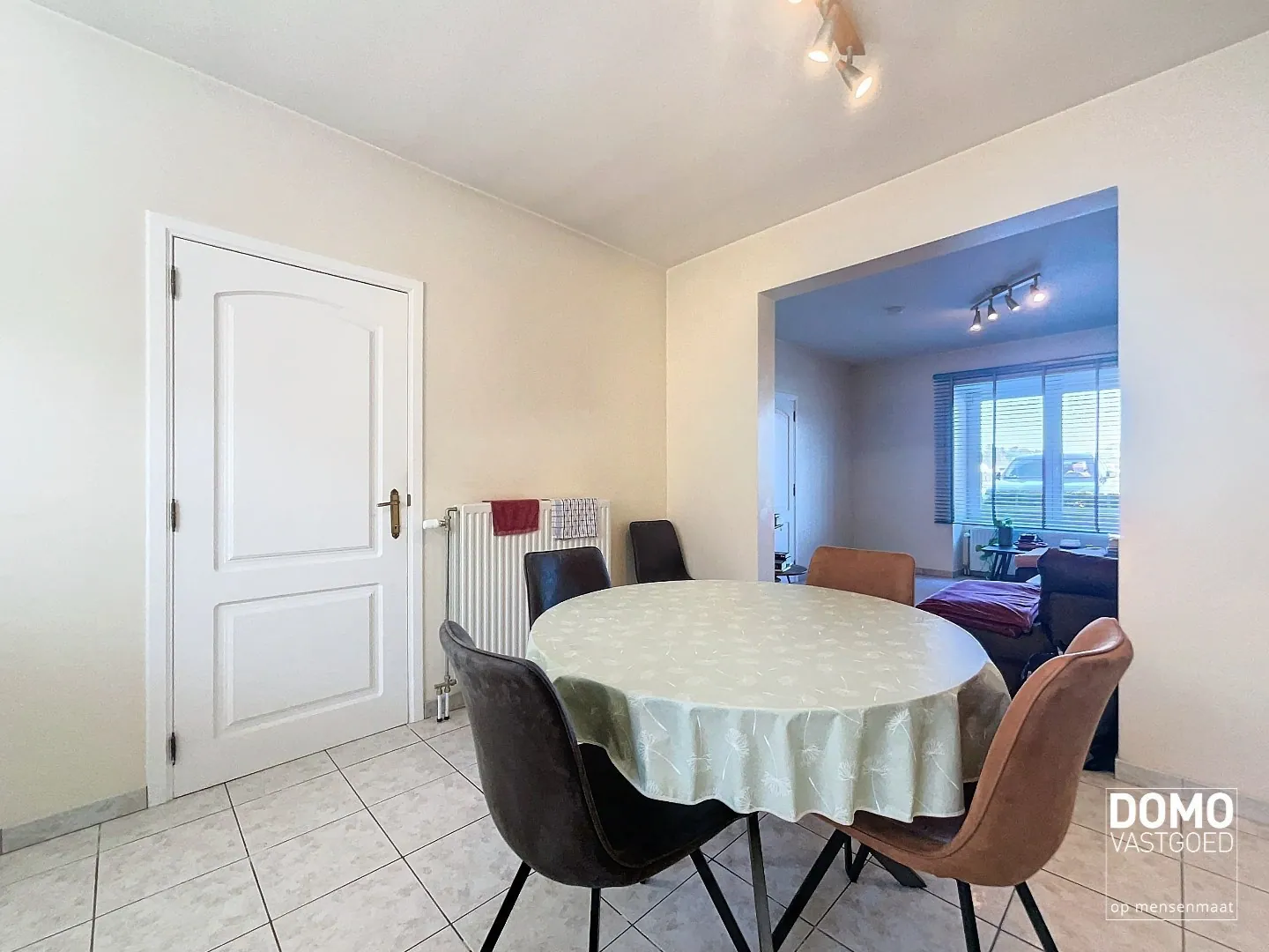 Bij binnenkomst betreedt u de inkomhal met rechtstreekse toegang tot de woonkamer. Deze bestaat uit een open ruimte met een eetplaats en een volledig ingerichte keuken. Aangrenzend vindt u een berging/wasplaats en een gastentoilet.