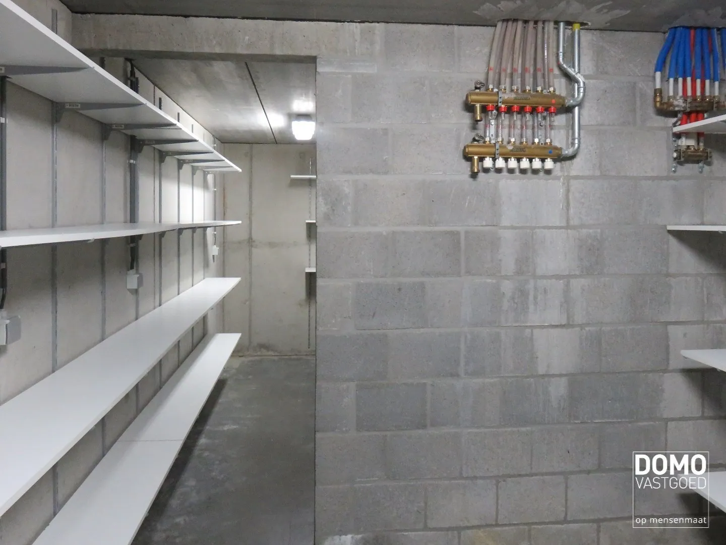 Gelijkvloers: Inkomhal met vestiairekast en voorzien van een apart gastentoilet, een ruime living met open keuken (voorzien van spoelbak, keramische kookplaat, combi-oven en vaatwasser), een handige wasplaats/berging en een vaste trap naar de ruime kelder.