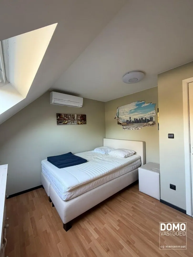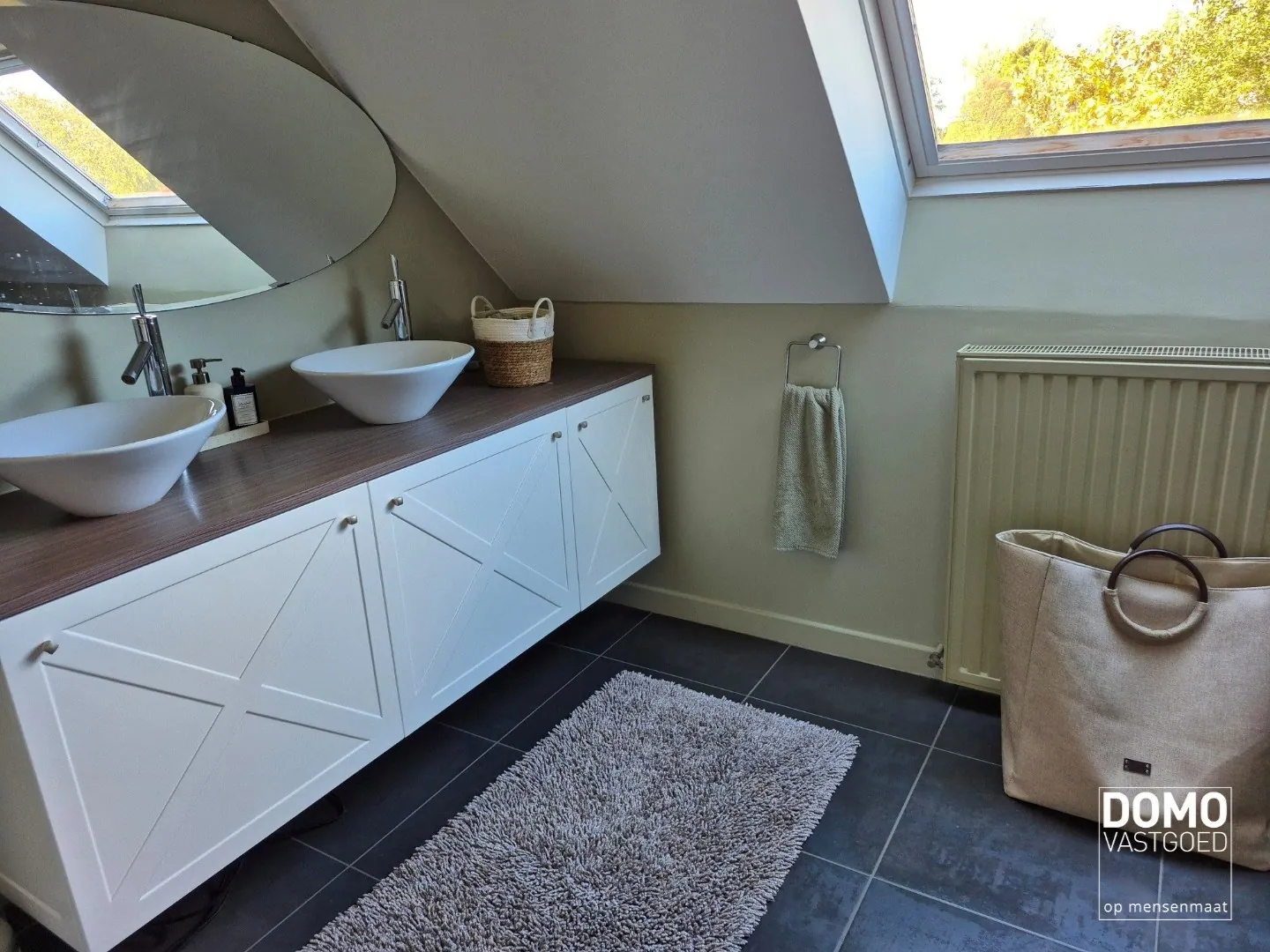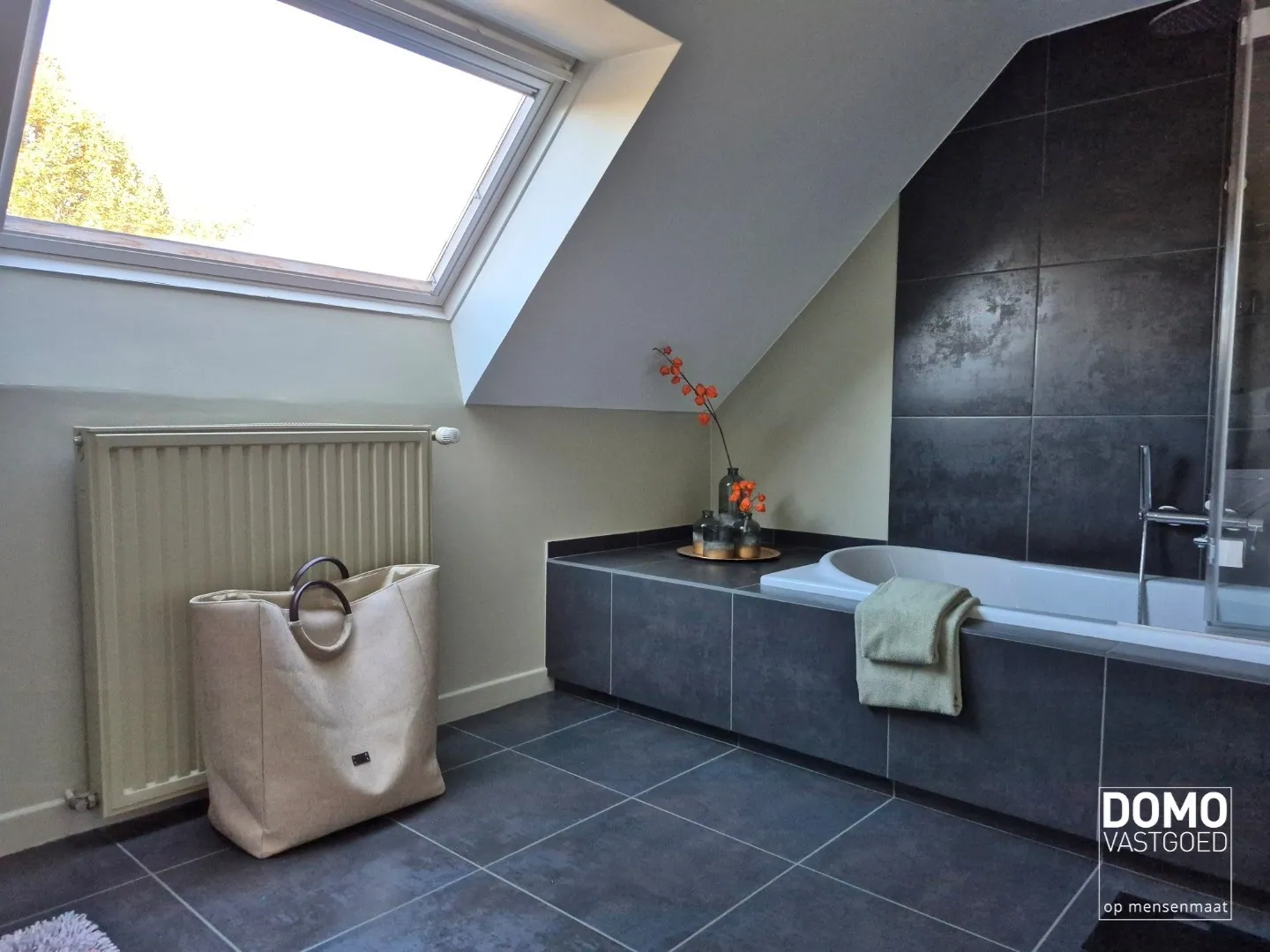 Op de bovenverdieping bevinden zich drie aangename slaapkamers. De master bedroom valt op door haar uitzonderlijke ruimte en overvloed aan ingemaakte kasten. Ook de andere kamers zijn perfect geschikt als kinder-, logeer- of hobbykamer. De badkamer is stijlvol afgewerkt met moderne materialen en een dubbele wastafel, en wordt heerlijk verlicht door het grote dakraam.