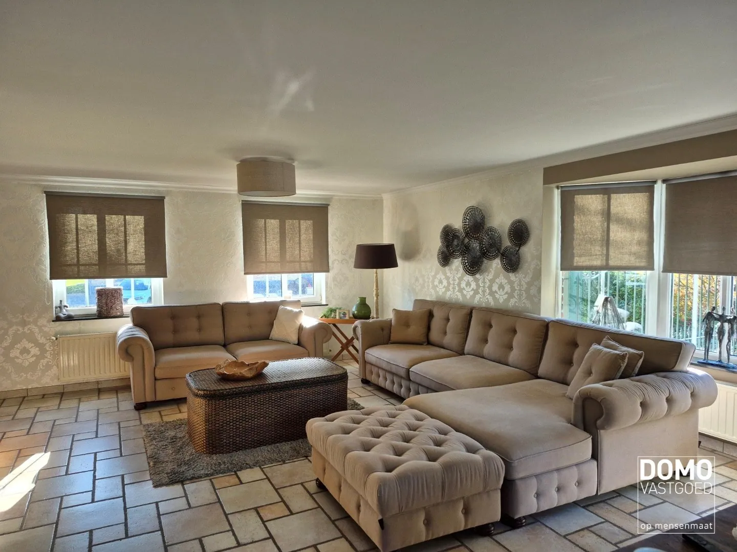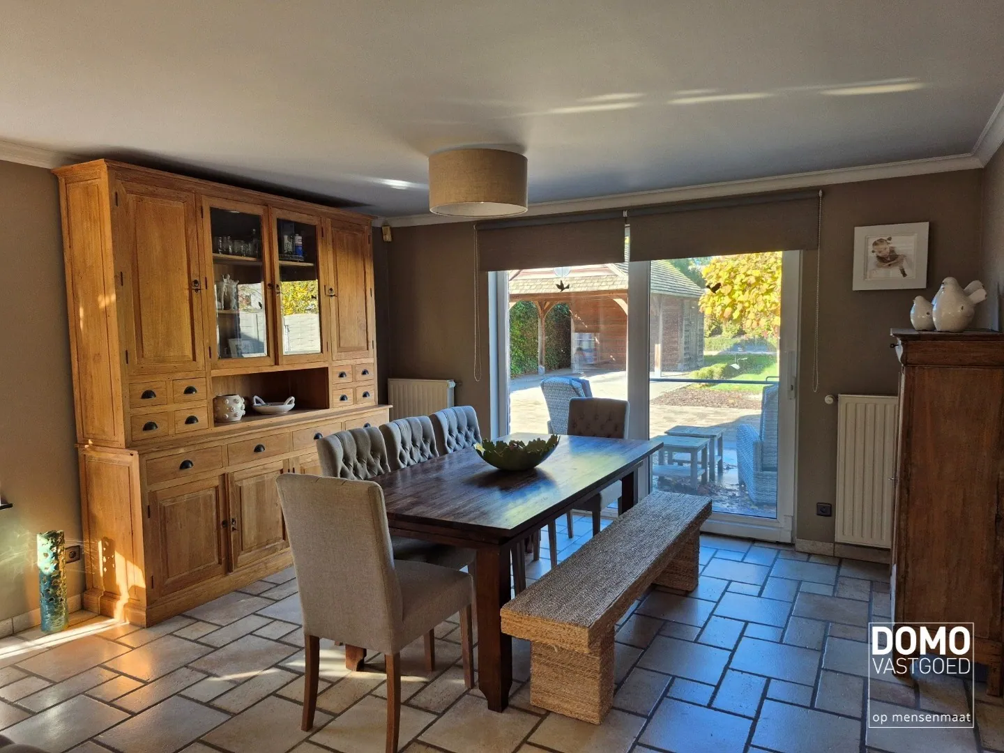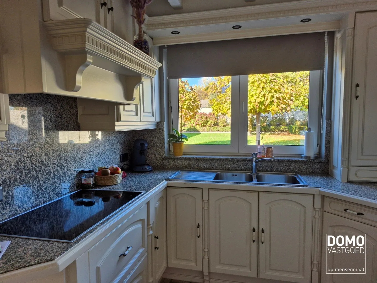 De grote, open leefruimte vormt het hart van de woning. Dankzij de vele ramen baadt de ruimte in natuurlijk licht en heb je voortdurend een prachtig zicht op de tuin. De zithoek en eetplaats vloeien mooi in elkaar over, waardoor een gezellige en huiselijke sfeer ontstaat. De aansluitende keuken vormt een praktische aanvulling op de leefruimte en maken het dagelijks leven bijzonder comfortabel.