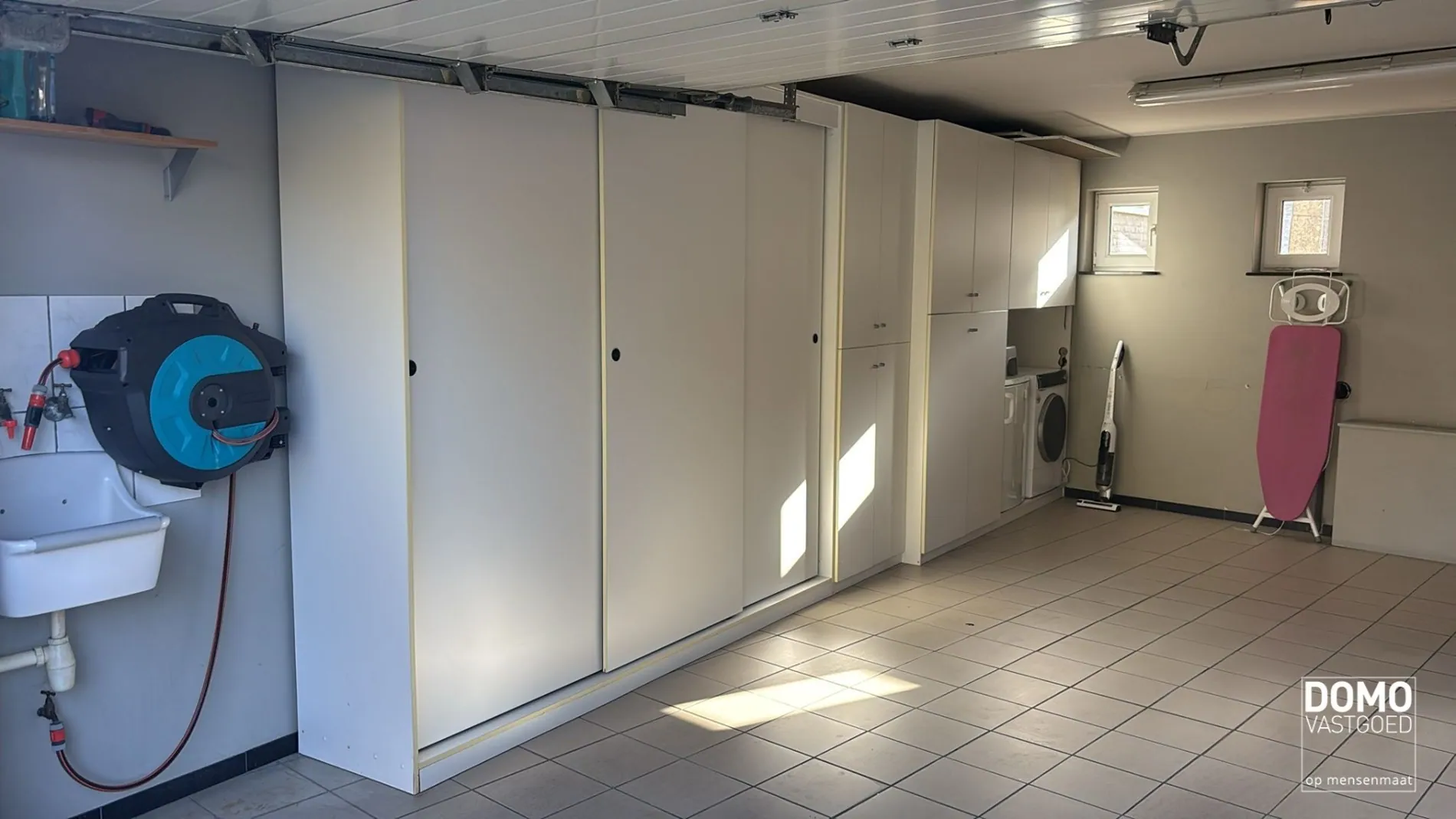 Verder is er gelijkvloers nog een slaapkamer/bureelruimte een extra wasruimte en een inpandige garage.