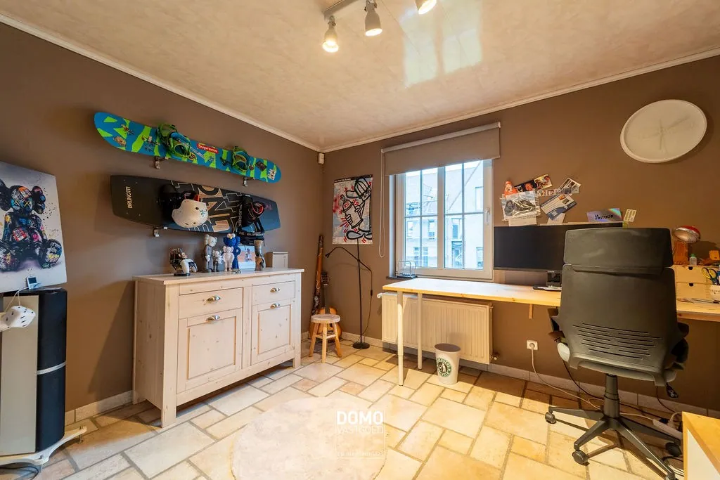 Op het gelijkvloers bevinden zich daarnaast nog een slaapkamer of bureauruimte, een aparte wasruimte en een inpandige garage.