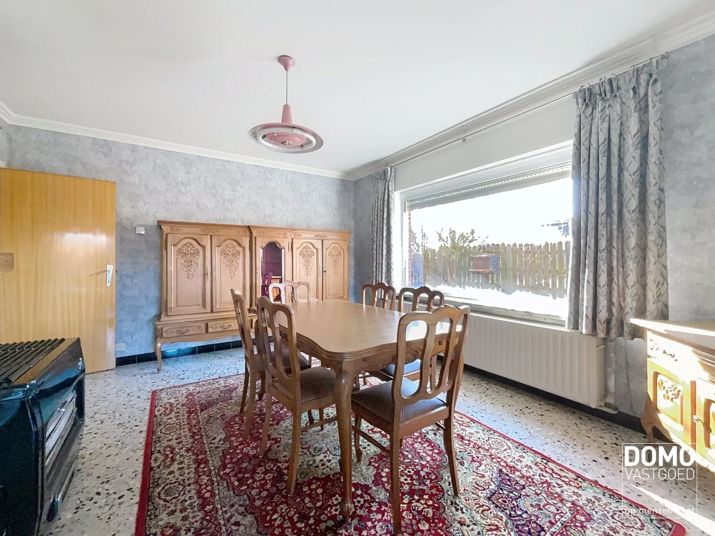 Gelijkvloers: inkomhal met toegang tot de kelder. Verder is er nog een woon- en eetkamer en een aparte keuken voorzien. Gelijkvloers is er eveneens de cv-ruimte en een badkamer voorzien.