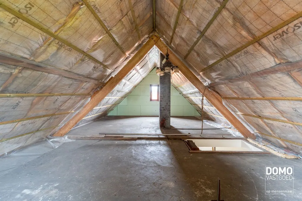 Verdieping: Ruime overloop met 3 slaapkamers en dressing (mogelijkheid tot 4de slaapkamer). Via het zolderluik heeft u toegang tot de geïsoleerde zolder.