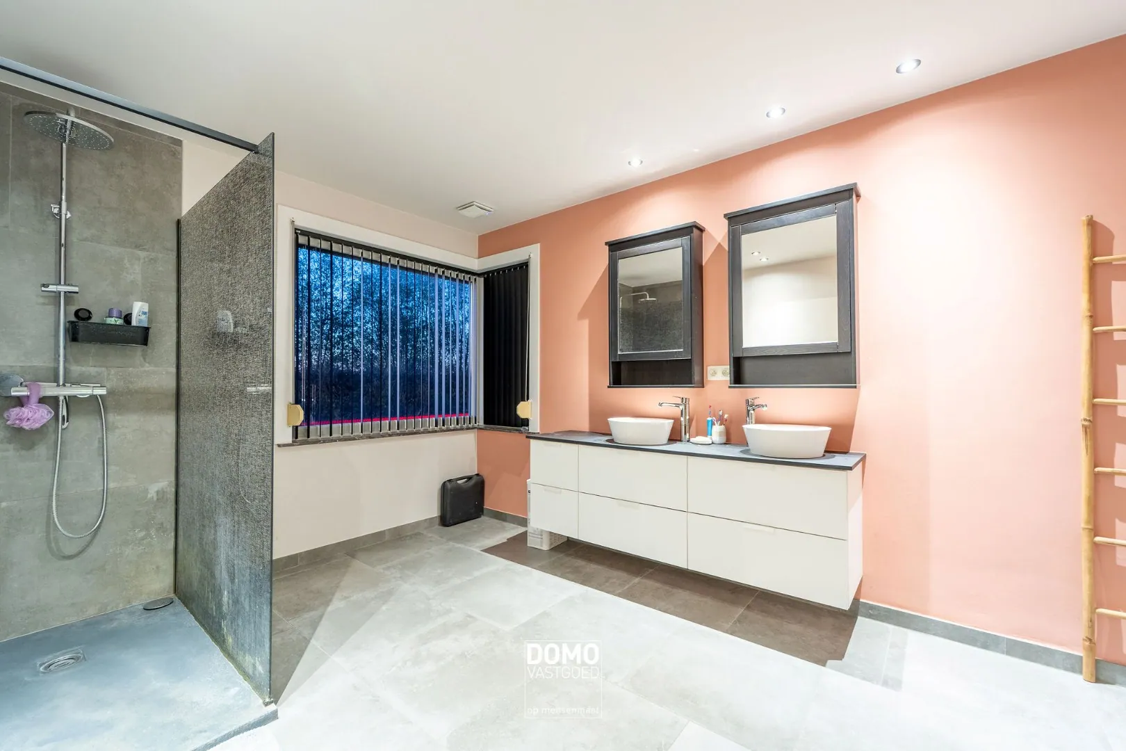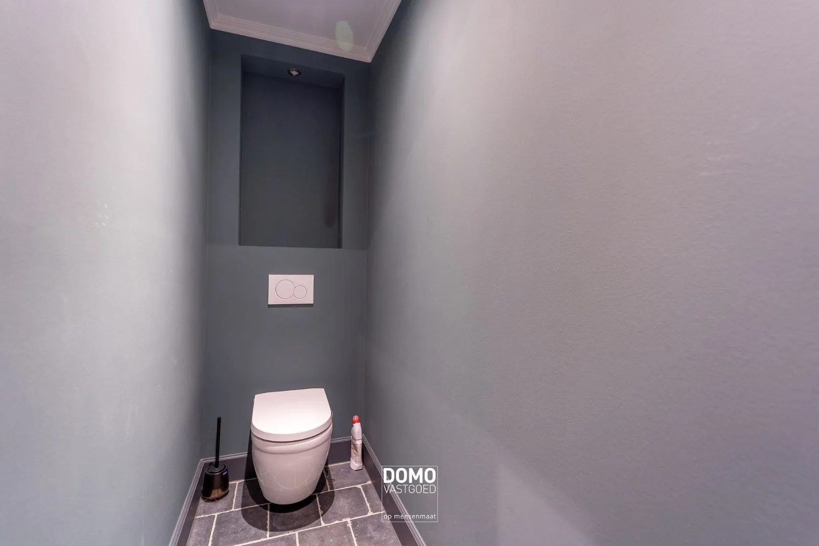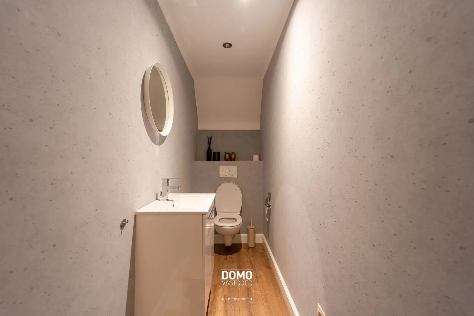 De moderne, vernieuwde badkamer vind je terug op het gelijkvloers en is voorzien van alle gemakken. Verder beschikt de woning ook over 2 afgewerkte toiletten, één beneden, en één boven.