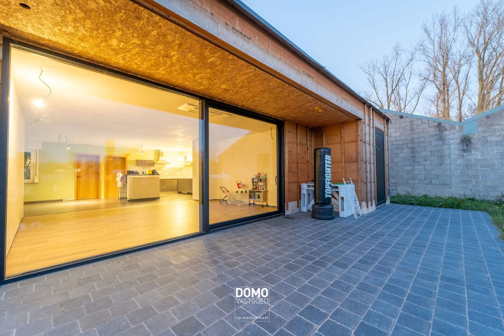 De leefruimte werd volledig nieuw bijgebouwd, en kan naar wens nog verder afgewerkt worden. Alle nodige technieken, isolatie zijn aanwezig.