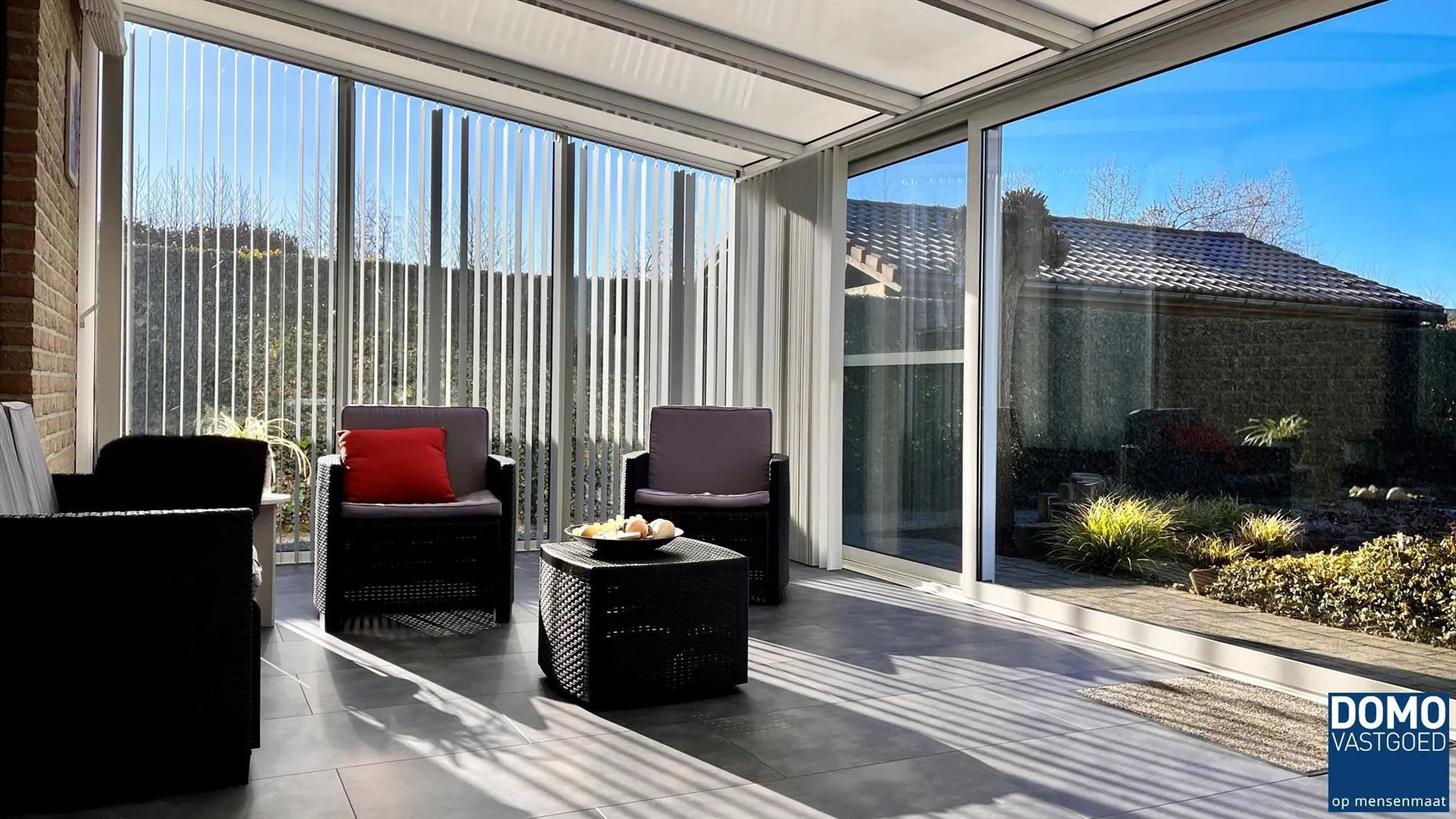 Achter de woning is er nog een garage voorzien met overdekt terras waar u kan genieten van de avondzon.