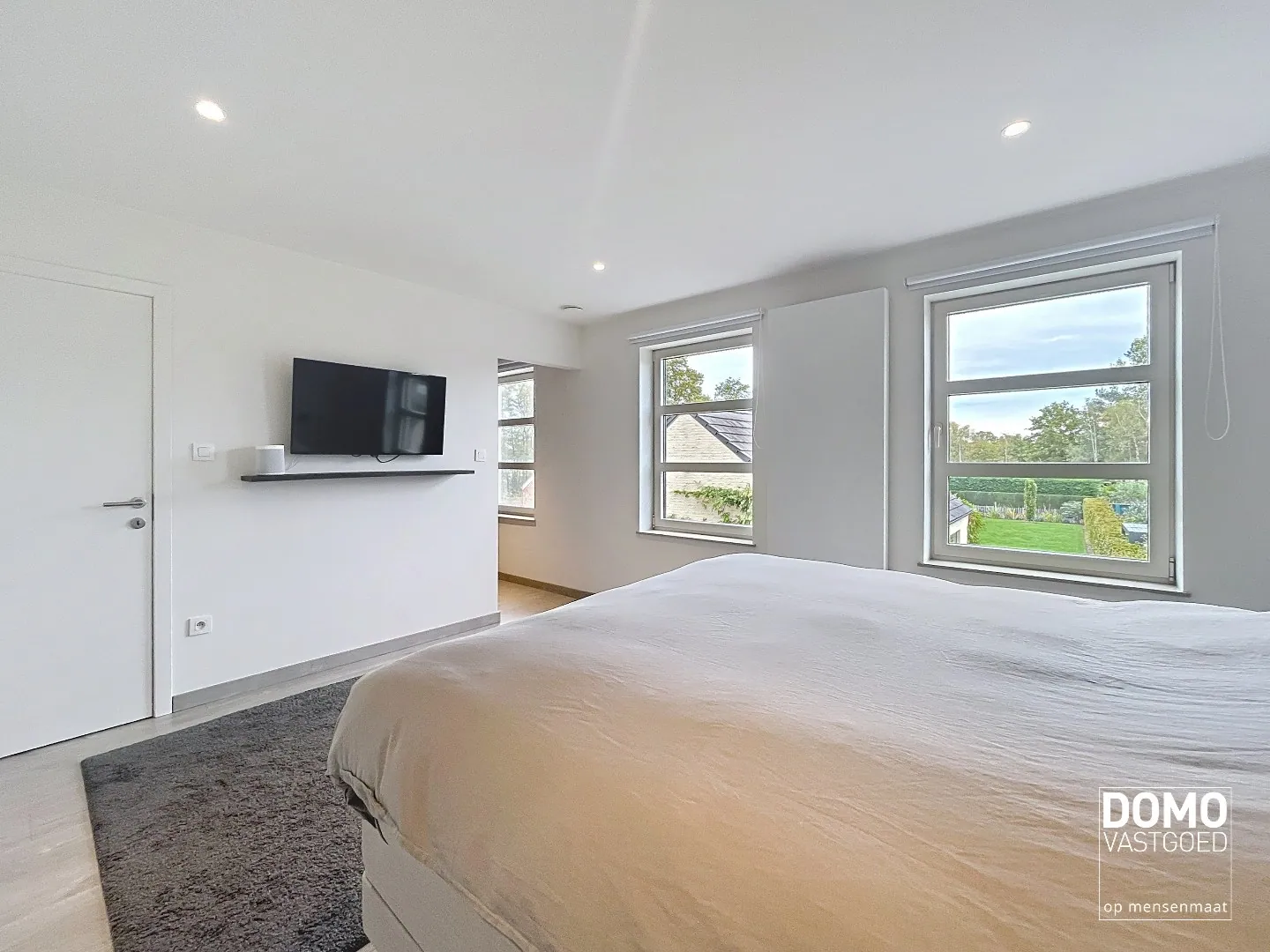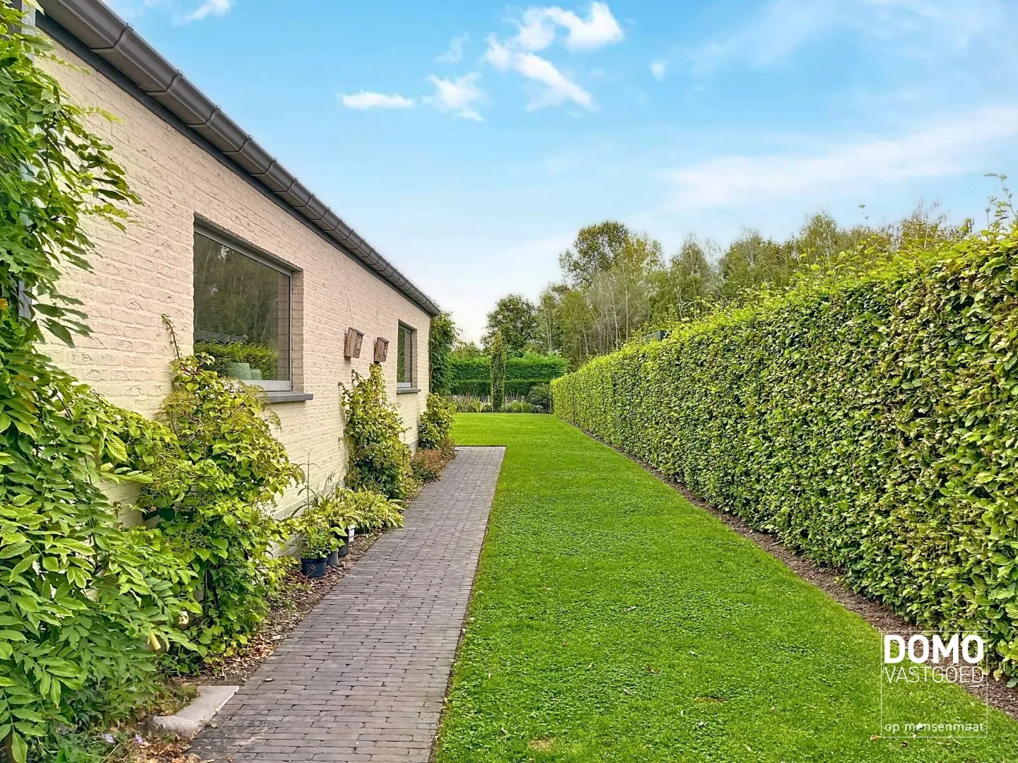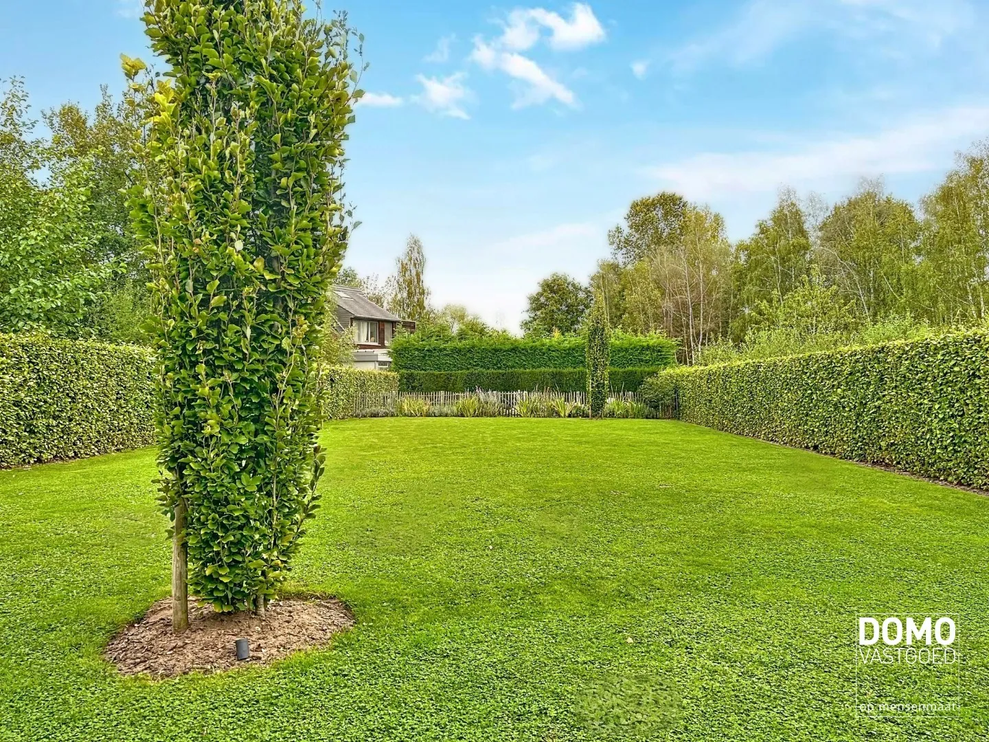 Buiten geniet je van een volledig aangelegde tuin met zonnig terras, uitgerust met een grasrobot en automatische sproei-installatie.