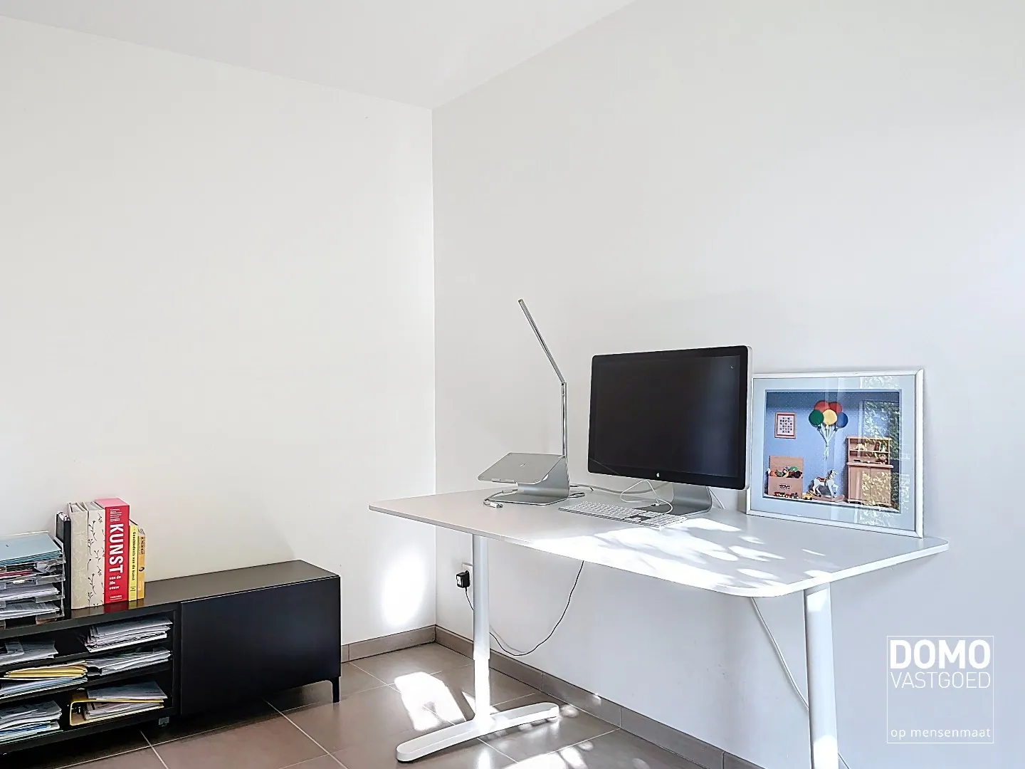 Aansluitend bevindt zich een handige berging en apart toilet. Verder vinden we op het gelijkvloers ook een aparte bureauruimte, bereikbaar vanuit de inkomhal.